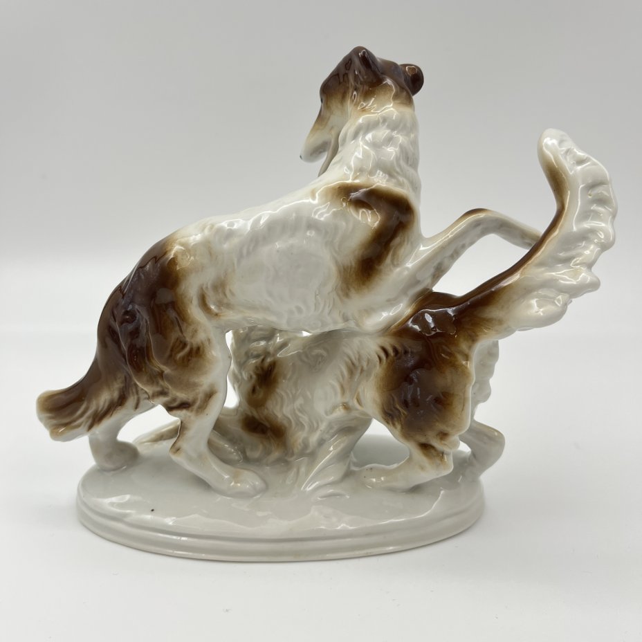 Статуэтка «Играющие борзые», фарфор, аэрография, Fasold & Stauch Bock Wallendorf, Германия, 1913-1972 гг.