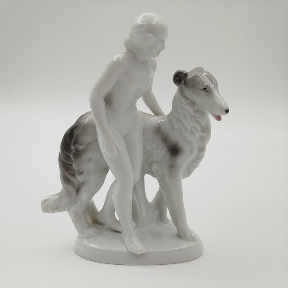Статуэтка "Девушка с борзой", фарфор, роспись, Fasold & Stauch Bock Wallendorf, Германия, 1950-1972 гг.