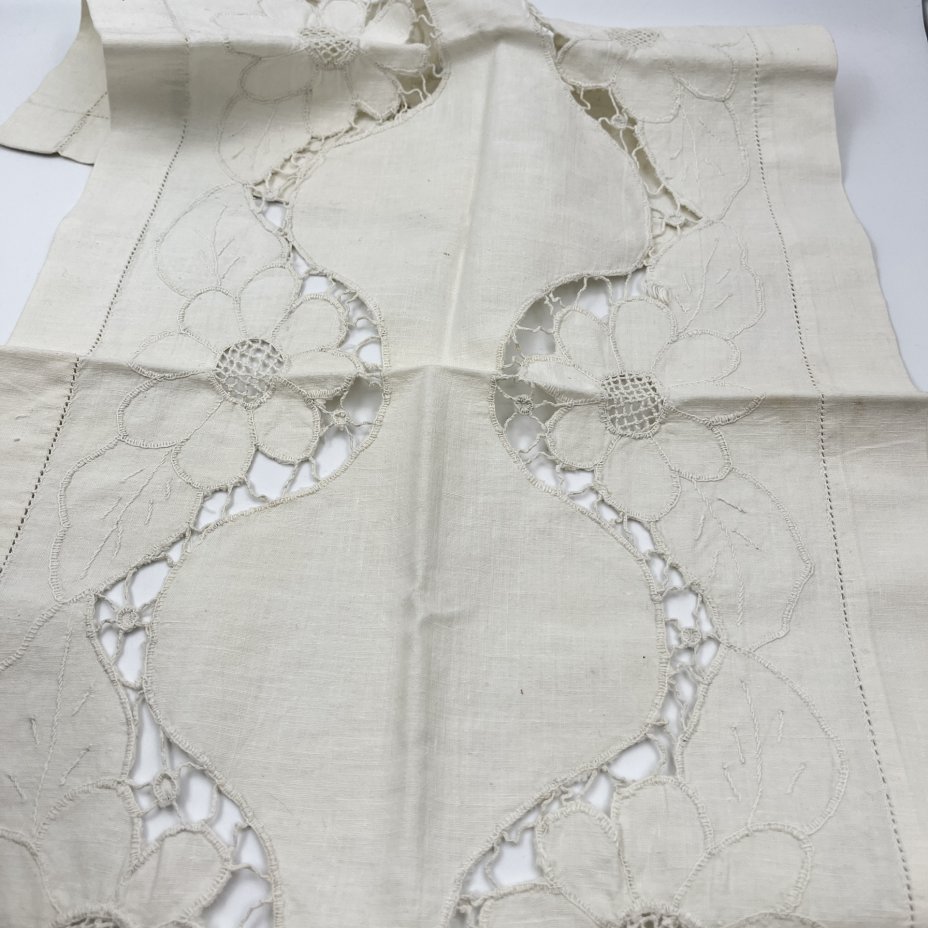 Салфетка-дорожка с цветочным мотивом, выполненная в технике ришелье, ткань, вышивка ришелье, машинное ткачество, ручная вышивка, Россия, 1920-1940 гг.