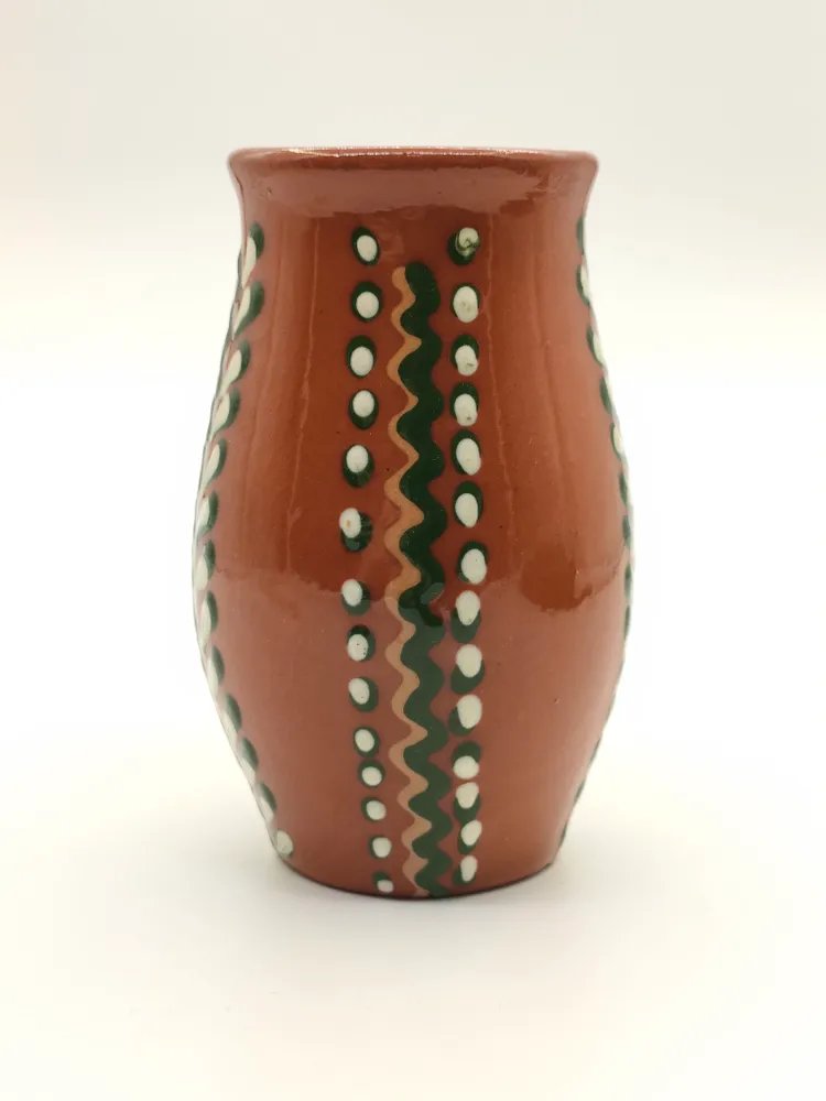 Ваза цилиндрической формы с вертикальными полосами, стекло, сульфидно-цинковое, Стекольный завод «Красный май», СССР, 1960-1980 гг.