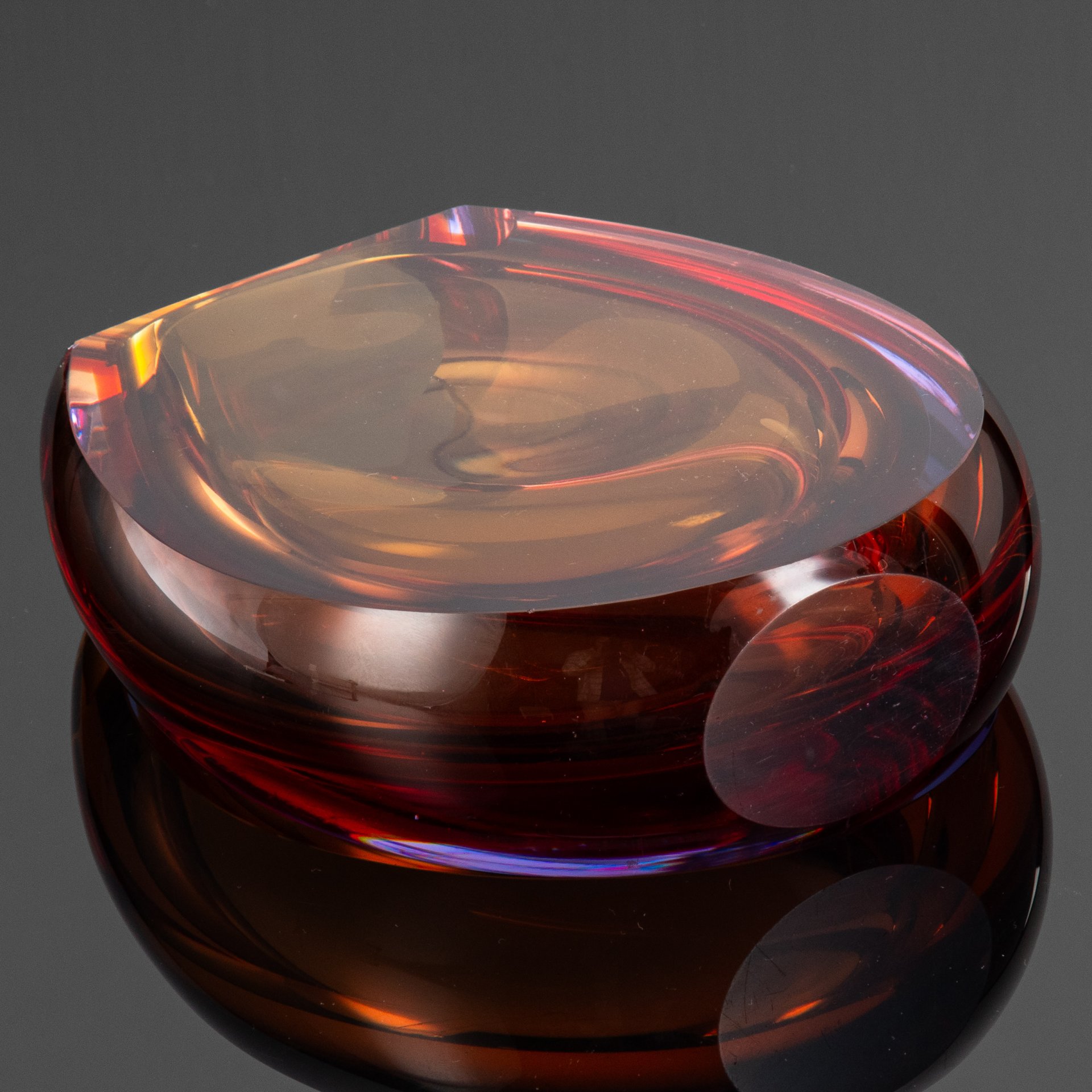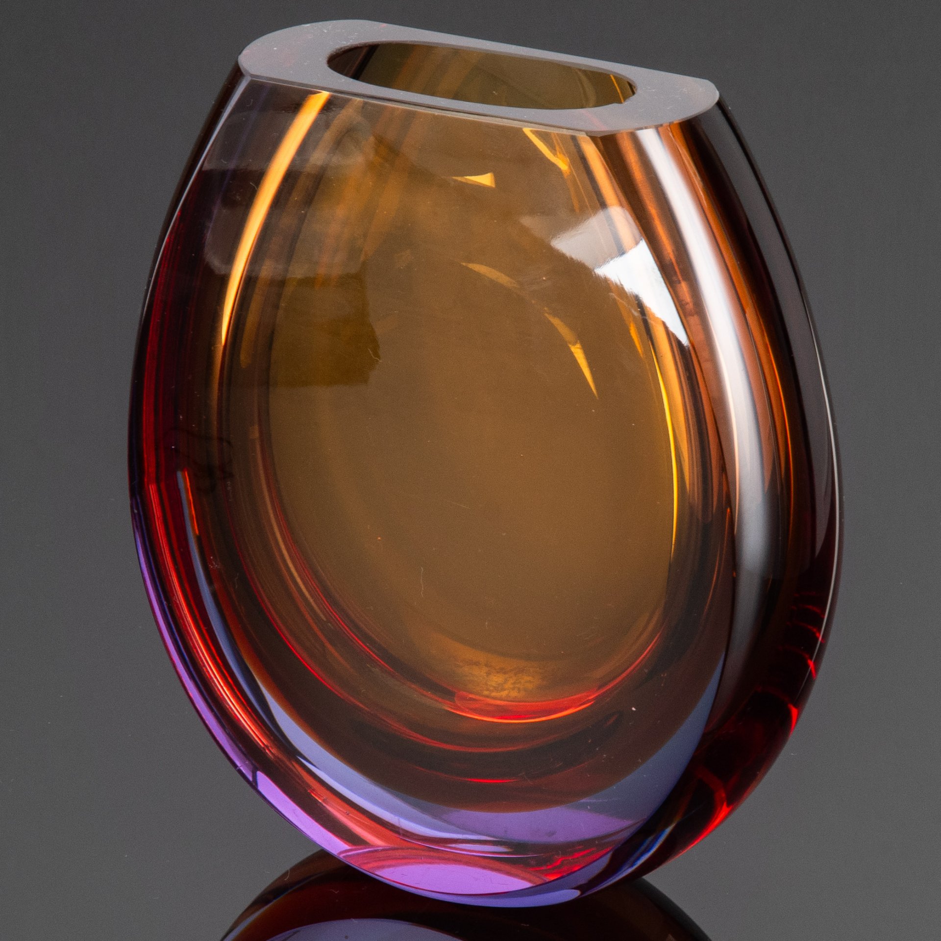 [Редкая расцветка] Ваза "Подкова", автор Е.В. Яновская, хрусталь, широкая грань, полировка, Ленинградский завод художественного стекла (ЛЗХС), СССР, 1960-1970 гг.