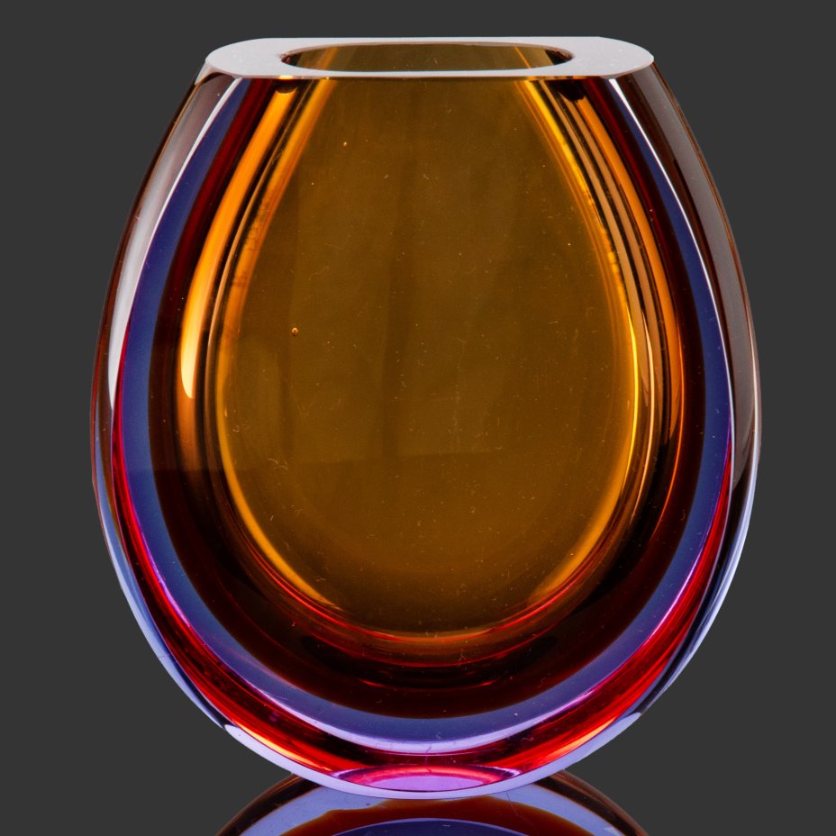 купить [Редкая расцветка] Ваза "Подкова", автор Е.В. Яновская, хрусталь, широкая грань, полировка, Ленинградский завод художественного стекла (ЛЗХС), СССР, 1960-1970 гг.