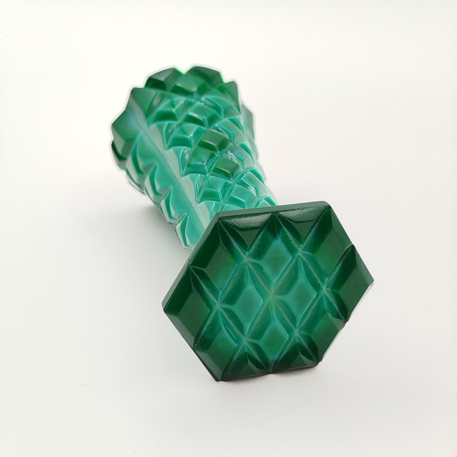 Ваза миниатюрная для небольшого букета зеленого оттенка, стекло, (малахитовое стекло), Чехословакия, 1950-1980 гг.