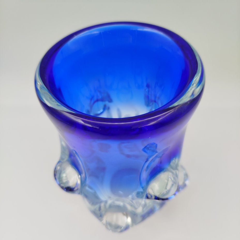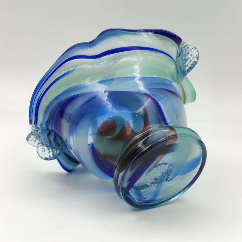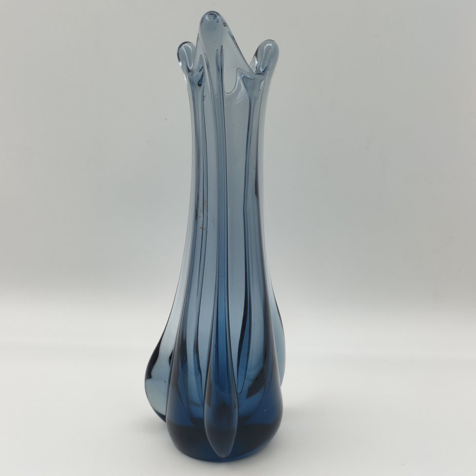Ваза необычной формы, дизайнер Josef Cvrček, номер модели 70214/27, стекло, техника "Sommerso" (Соммерсо), Zelezny Brod Sklo (Железнобродский стекольный завод), Чехословакия, 1970-1980 гг.