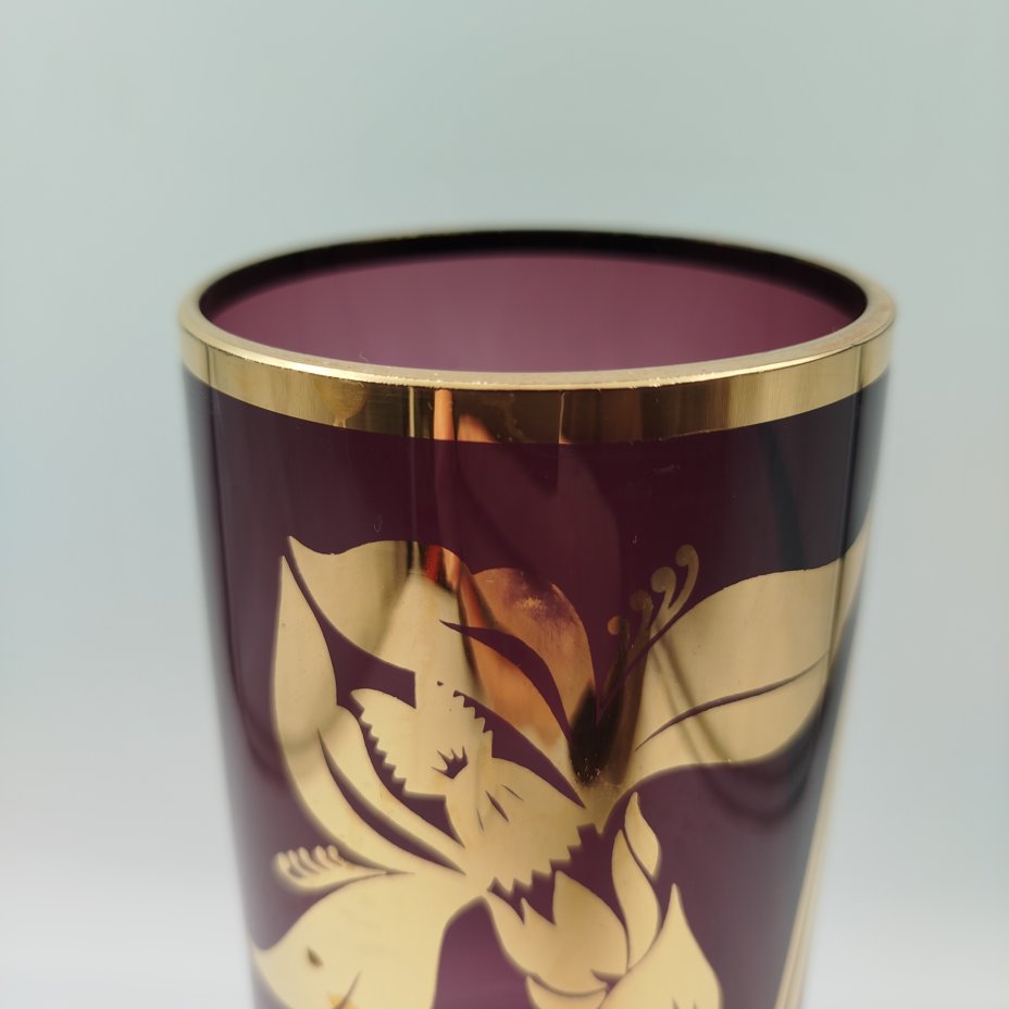 Ваза, украшенная изображением ириса, стекло, золочение, Чехословакия, 1970-1990 гг.