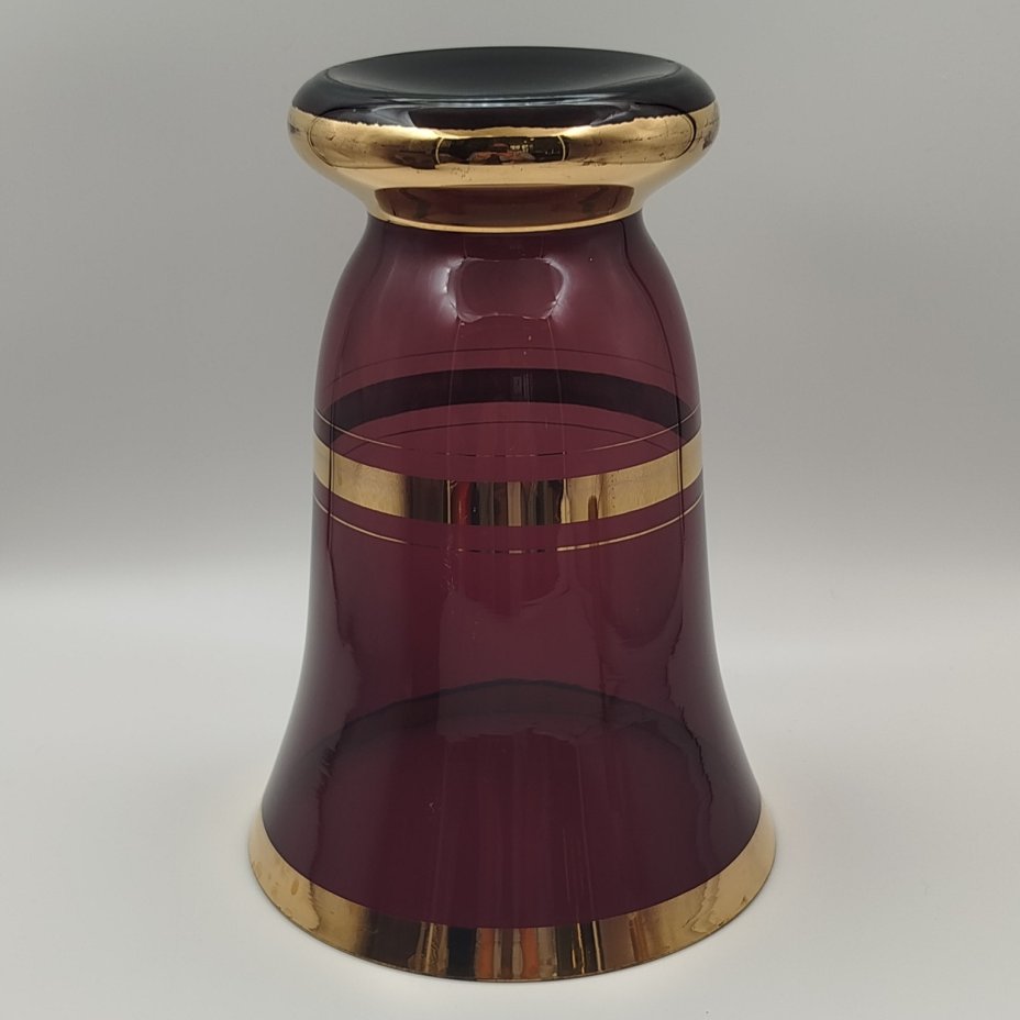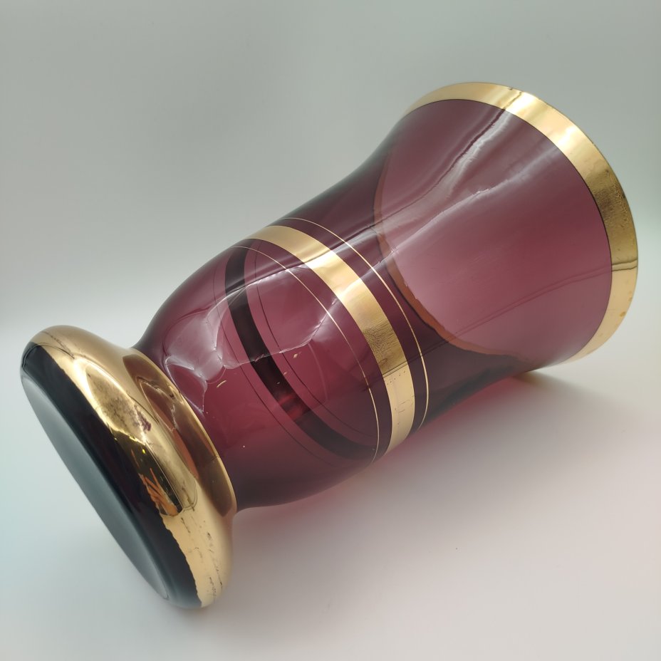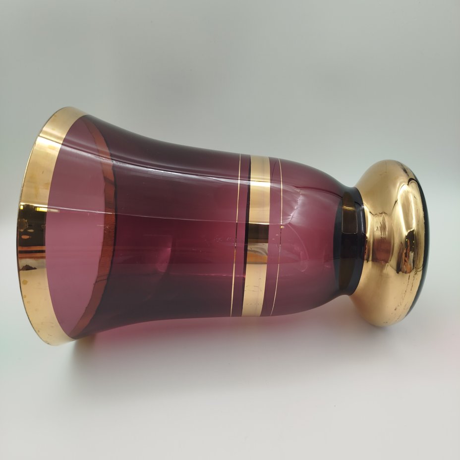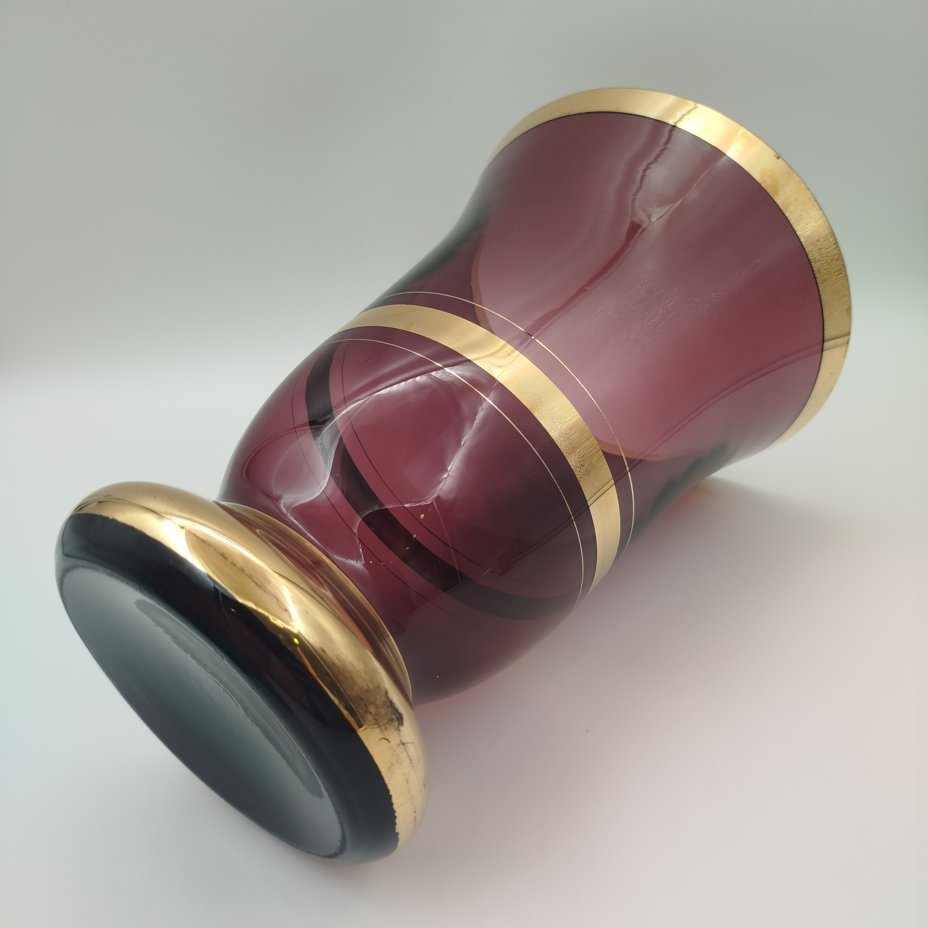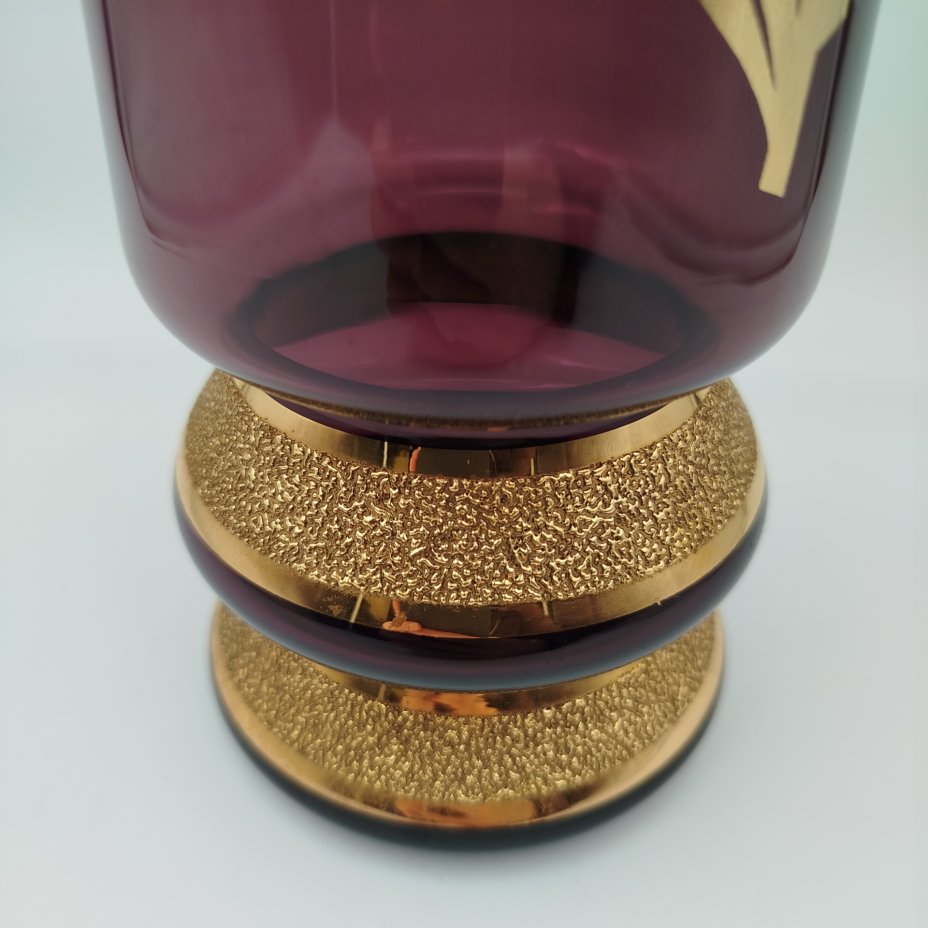 Ваза-кратер фиолетового оттенка с золотыми лентами, стекло, золочение, Чехословакия, 1970-1990 гг.