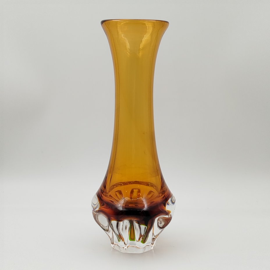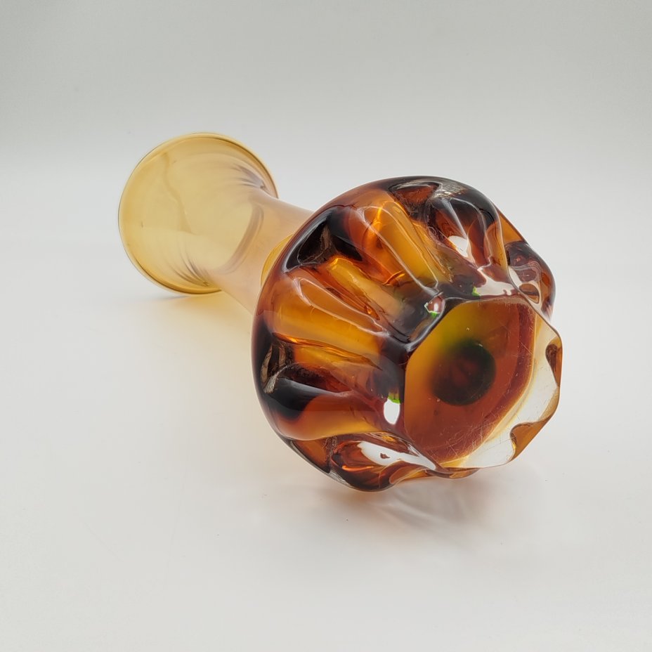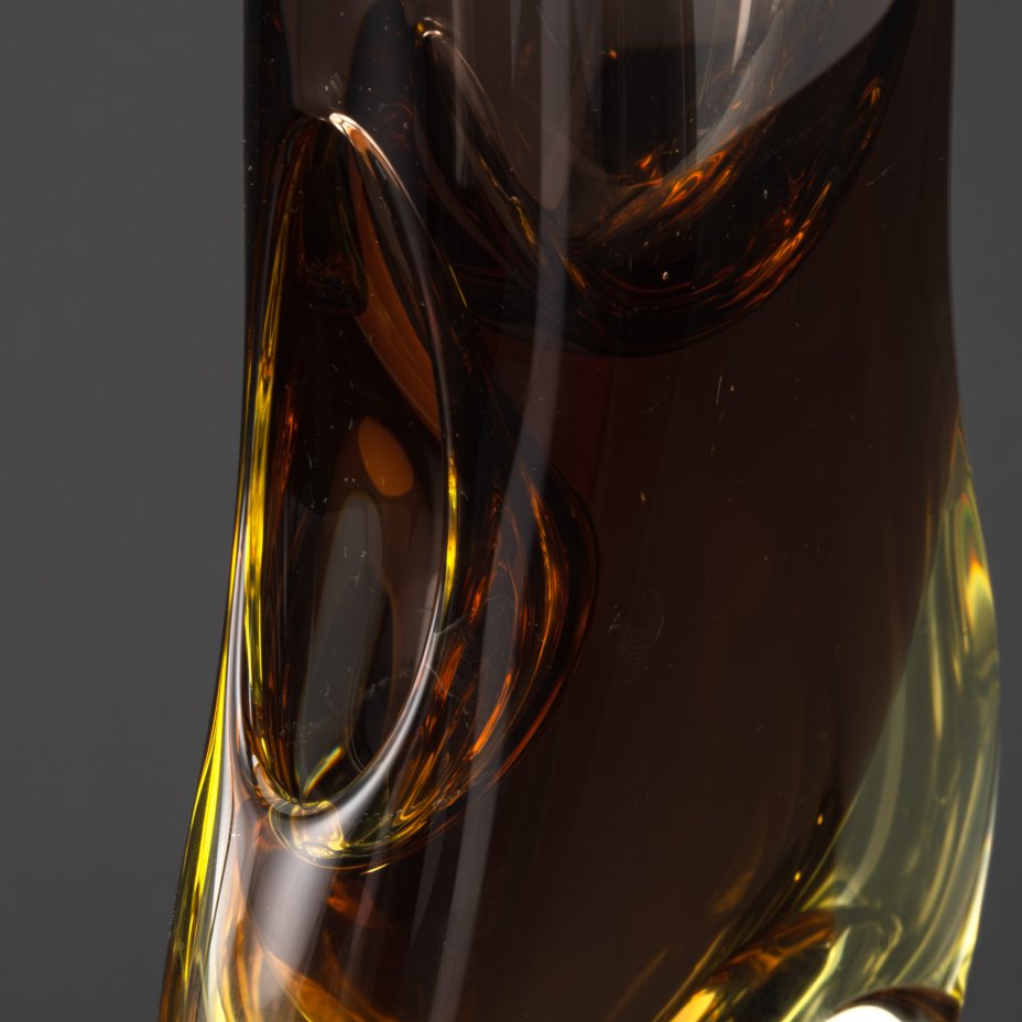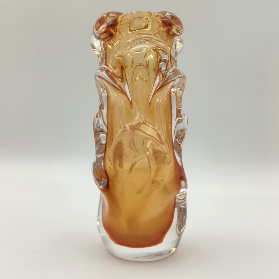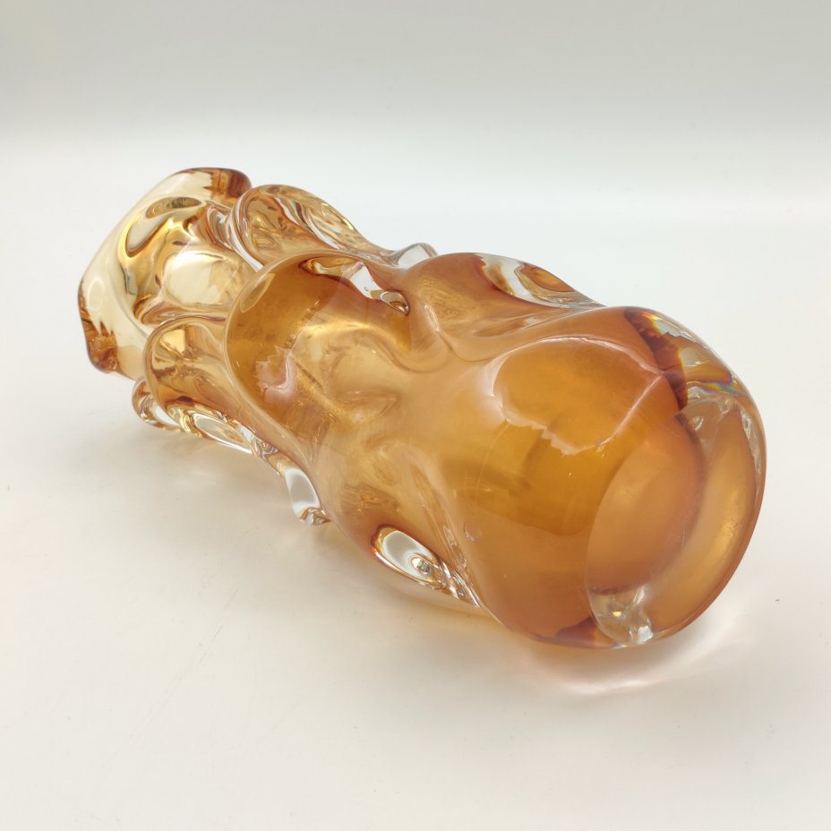 Ваза оригинальной формы, выполненная в медовом оттенке, дизайнер Jan Beránek (Ян Беранек), стекло, гутная техника, Скрдловице (Skrdlovice), Чехословакия, 1950-1970 гг.