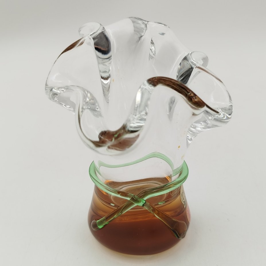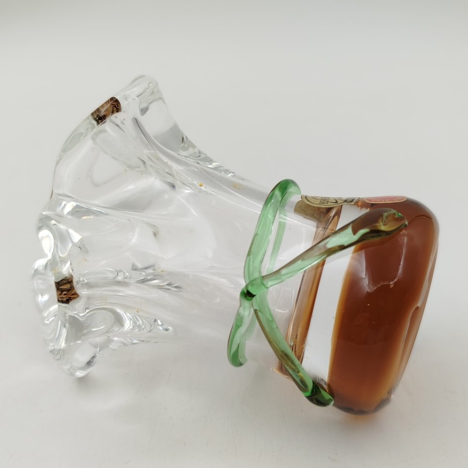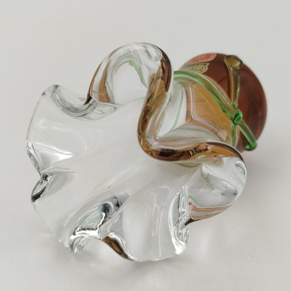 Ваза (фруктовница) необычной формы Prachen , дизайн Josef Hospodka, стекло, гутная техника, налепы, Bohemia Crystalite, Чехословакия, 1969-1970 гг.