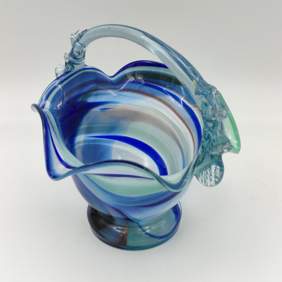Ваза разноцветная в форме корзиночки с волнообразным бортом, стекло, гутная техника, Чехословакия, 1960-1990 гг.