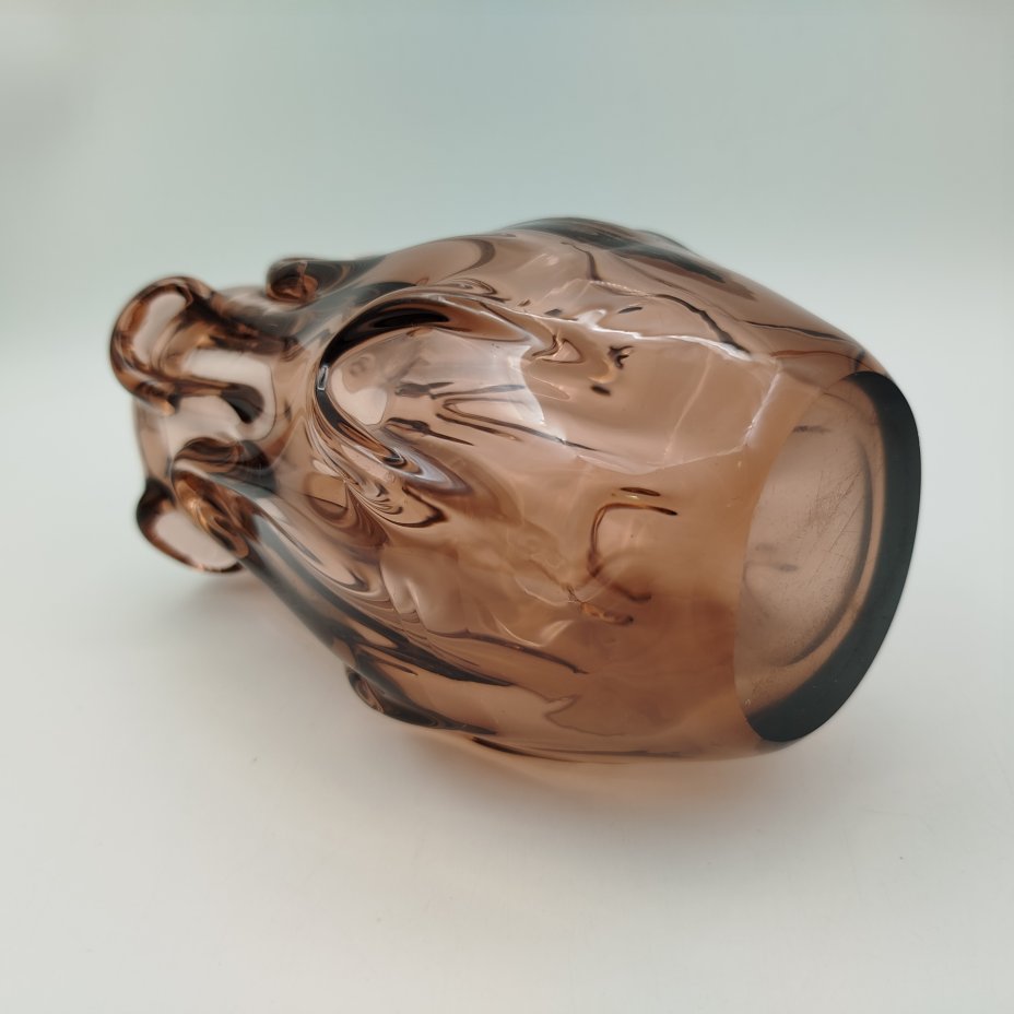 Ваза фиолетового оттенка, предположительно автор Ян Беранек (Jan Beránek), цветное стекло, гутная техника, бульгазе, Скрдловице (Skrdlovice), Чехословакия, 1960-1970 гг.