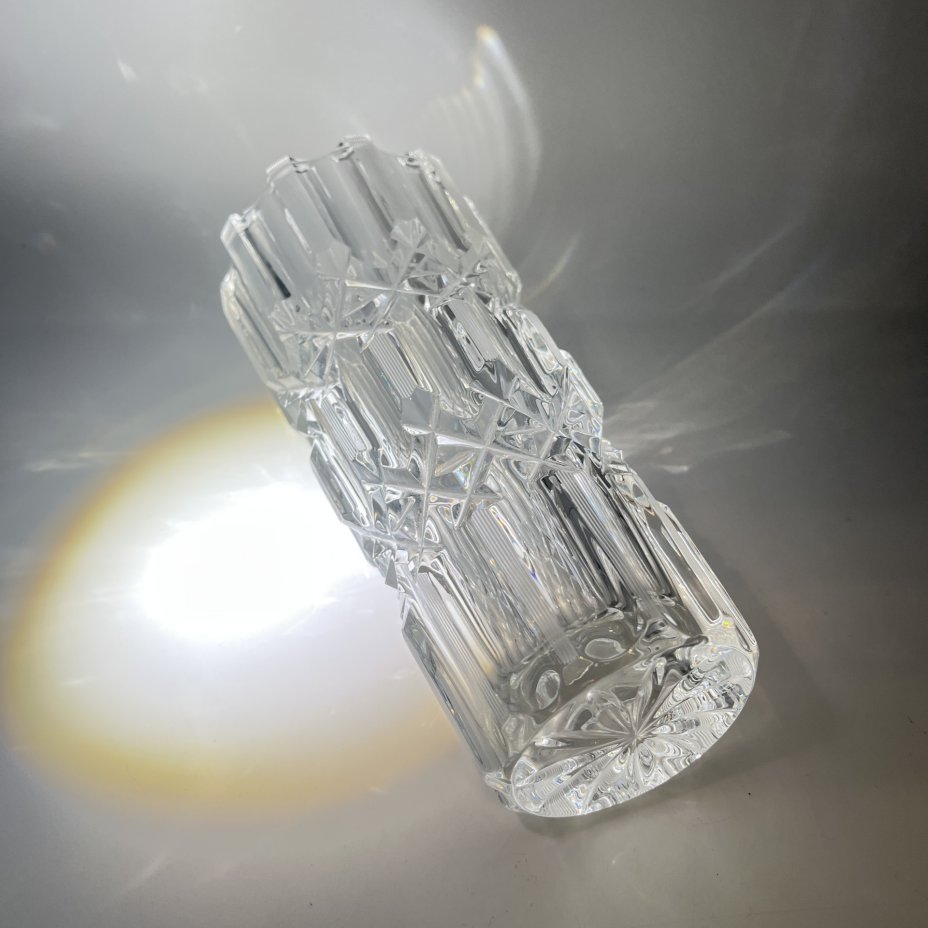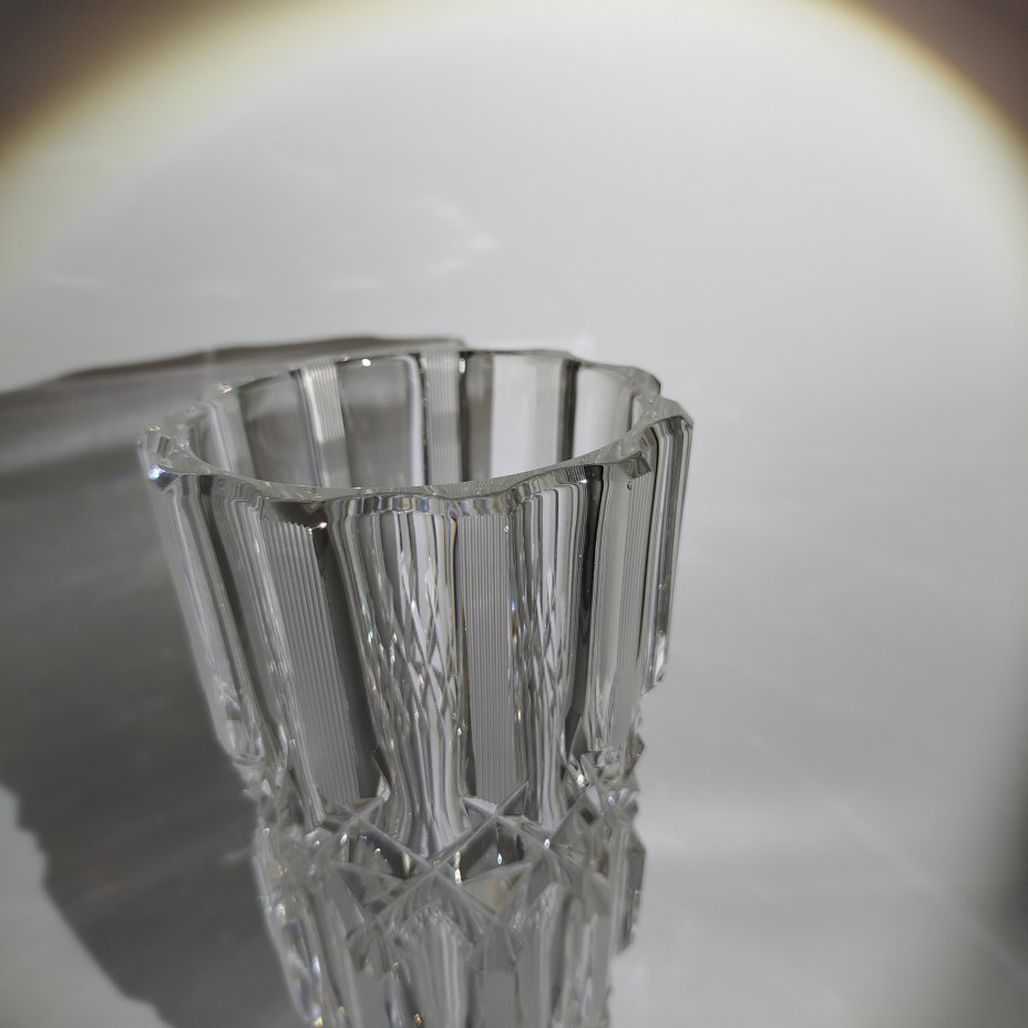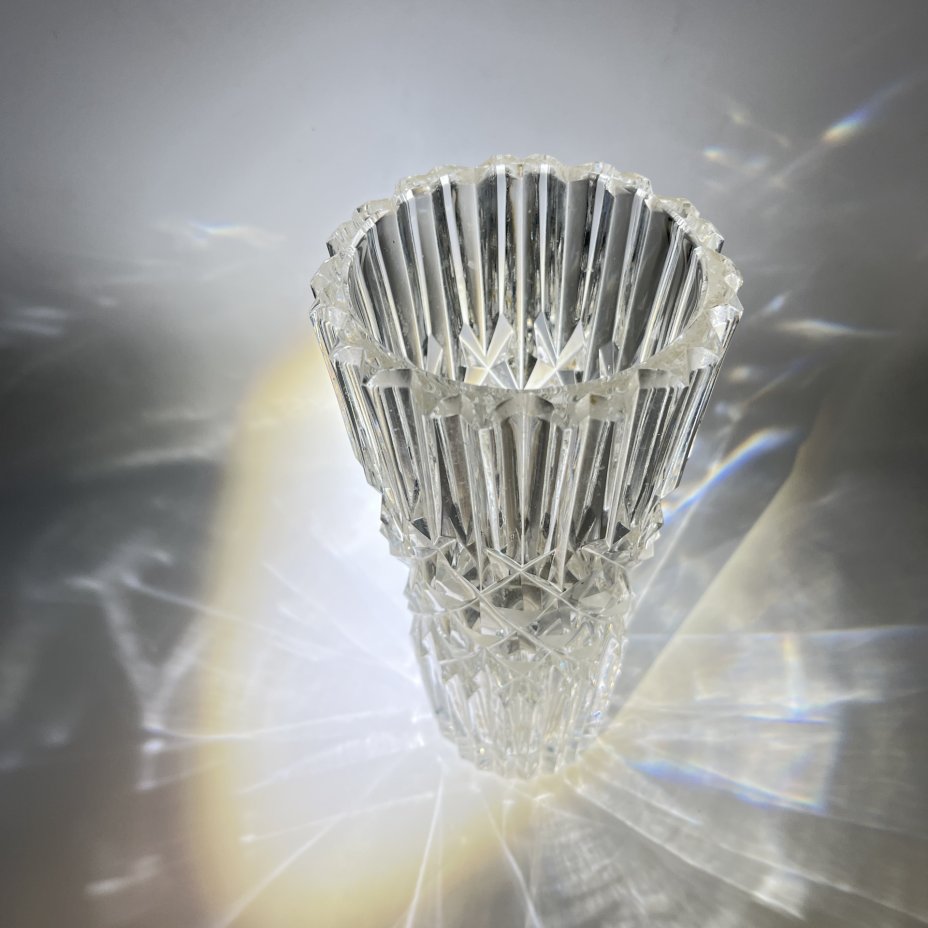 Ваза для цветов с резным геометрическим декором, хрусталь, алмазная грань, Завод «Красный Гигант», СССР, 1970-1990 гг.