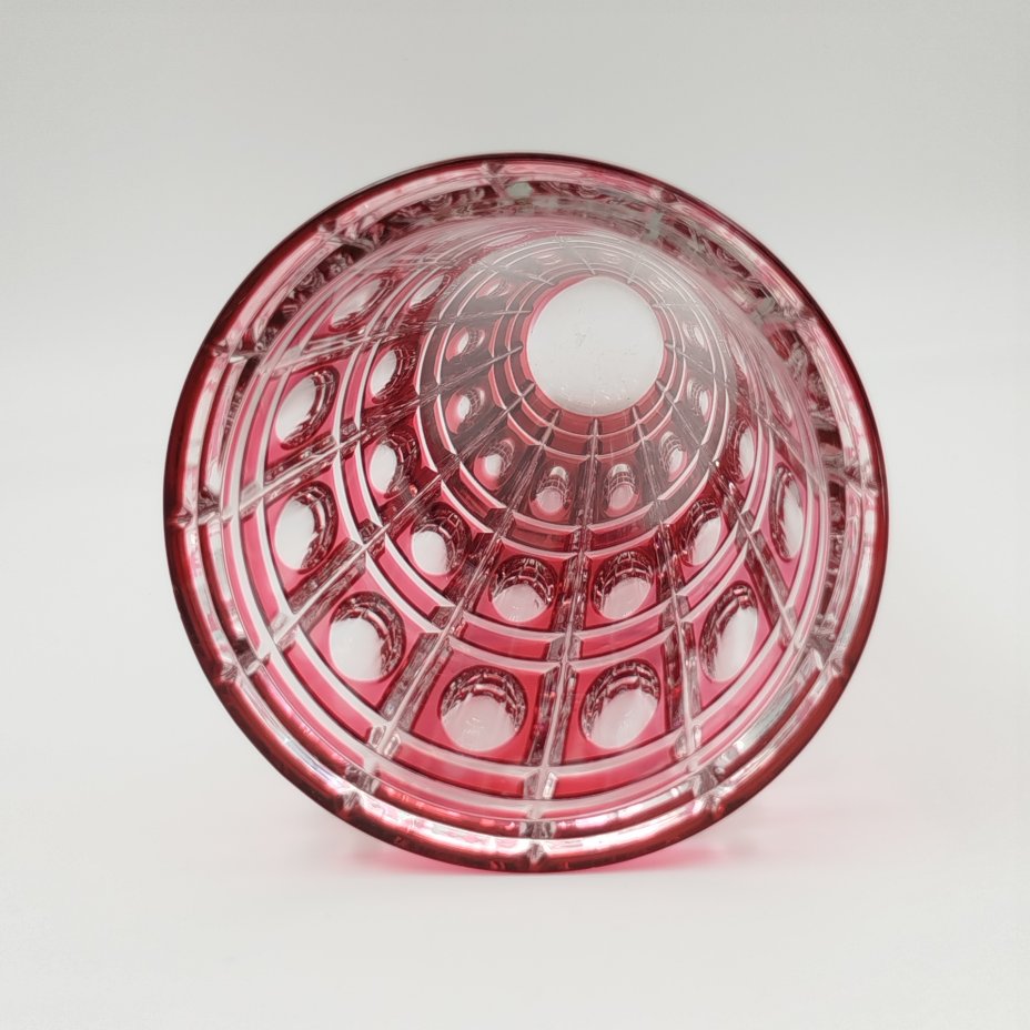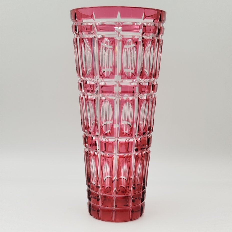 Ваза "Праздничная" розового цвета ("золотой рубин"), автор А.А. Аствацатурьян, хрусталь, цветной хрусталь, алмазная грань, Ленинградский завод художественного стекла (ЛЗХС), СССР, 1970-1980 гг.
