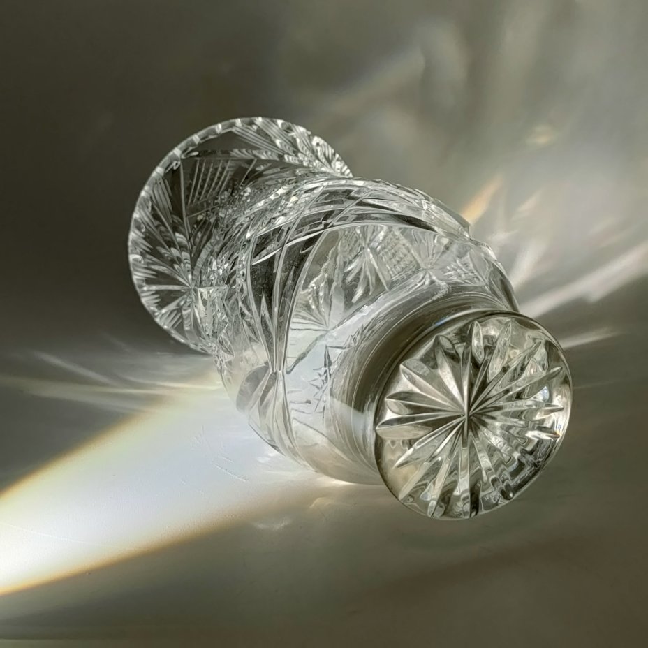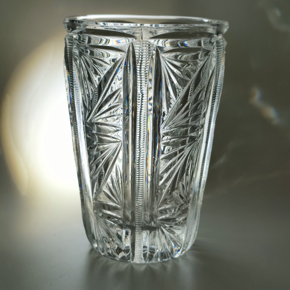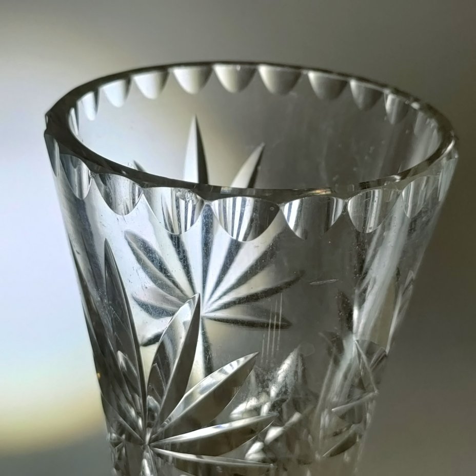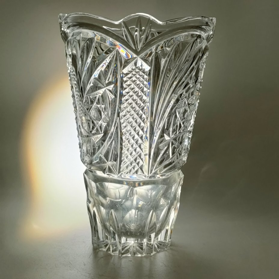 Ваза для цветов с резным декором, хрусталь, алмазная грань, СССР, 1960-1990 гг.