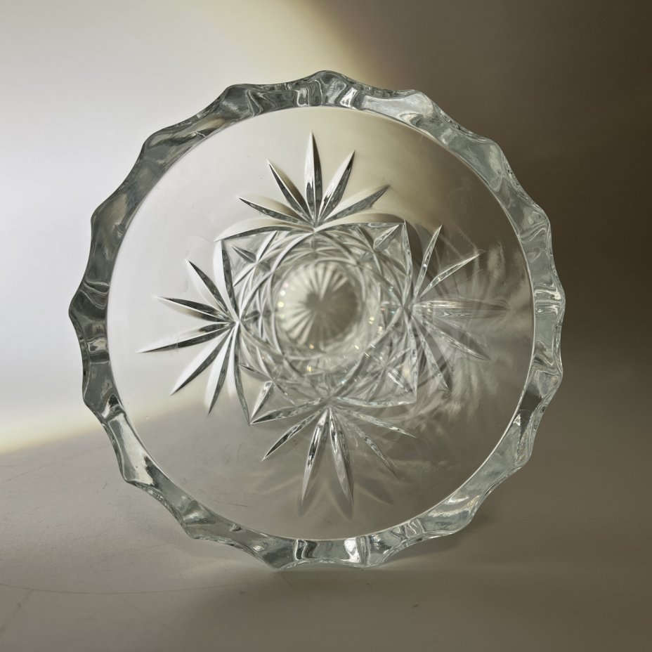 Ваза в форме кубка с фигурной горловиной, хрусталь, алмазная грань, СССР, 1950-1970 гг.