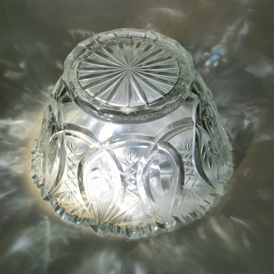 Ваза (фруктовница) с геометрическим декором, хрусталь, алмазная грань, СССР, 1970-1990 гг.