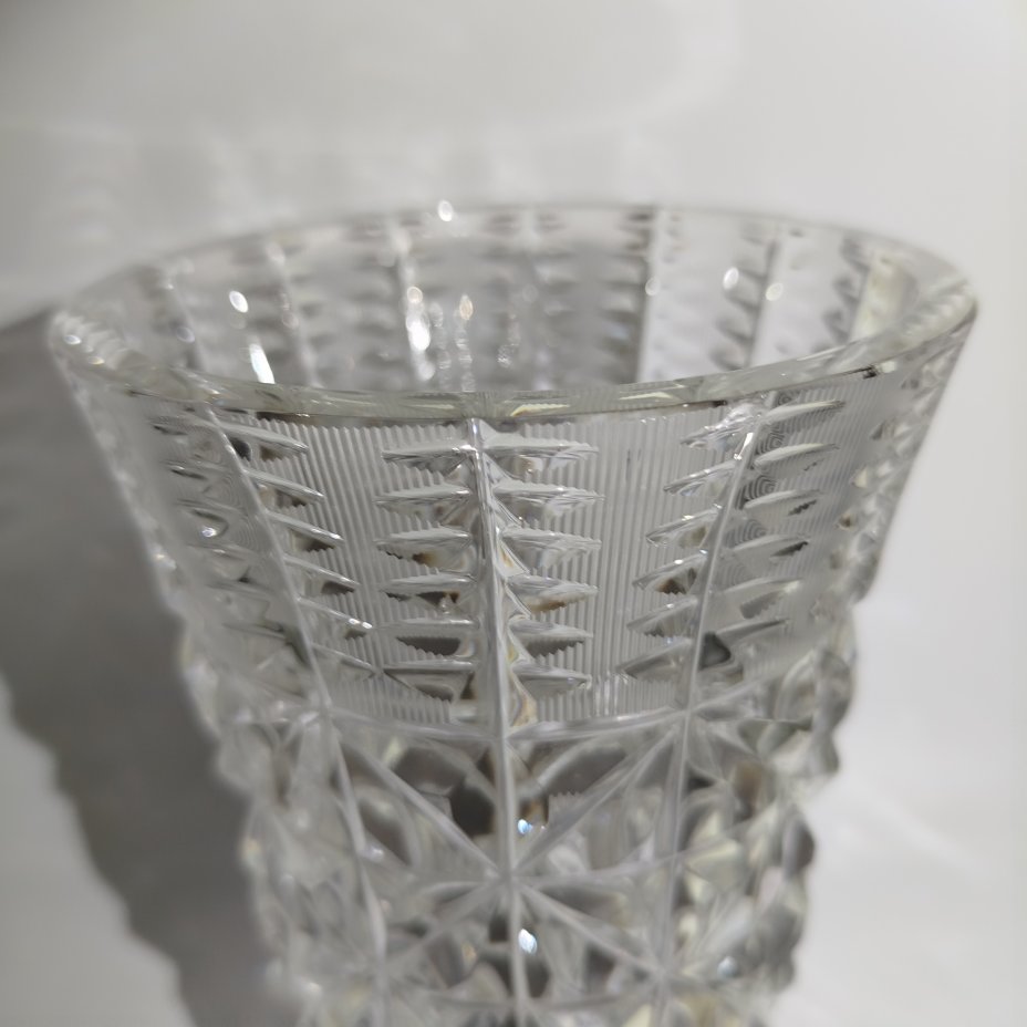 Ваза для цветов с резным геометрическим декором, хрусталь, алмазная грань, СССР, 1970-1990 гг.