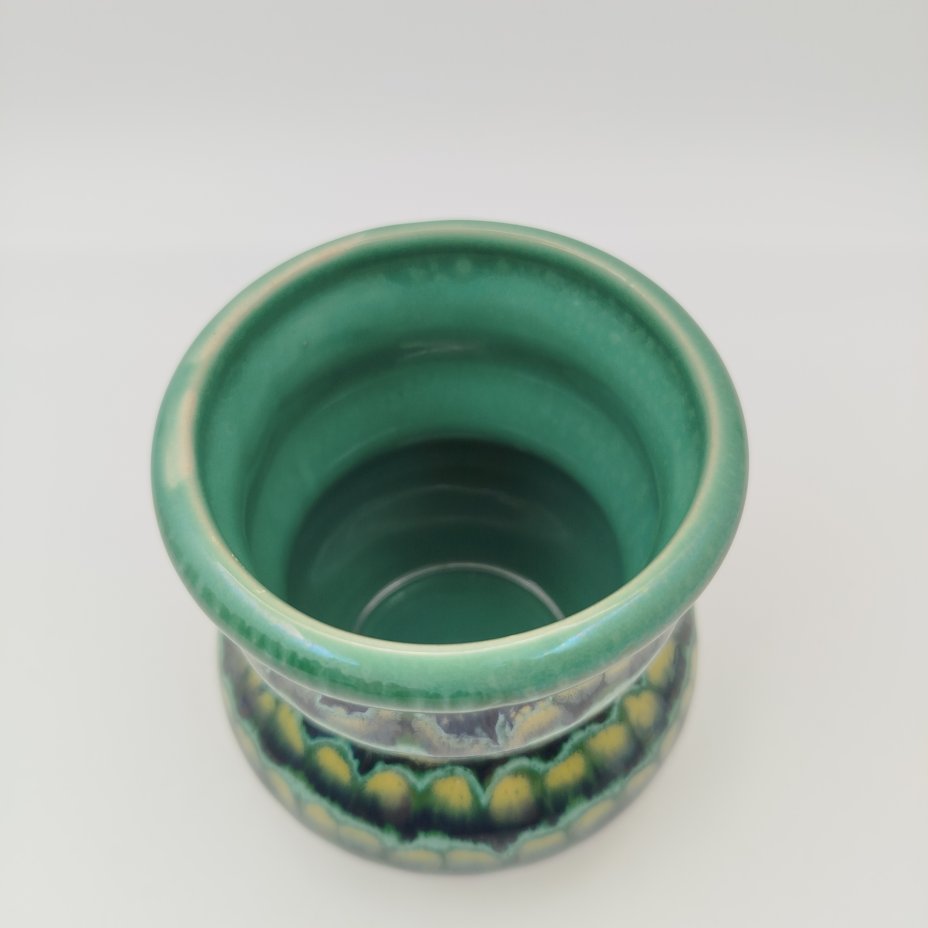 Ваза для цветов с разноцветным орнаментом, керамика, поливы, СССР, 1970-1990 гг.