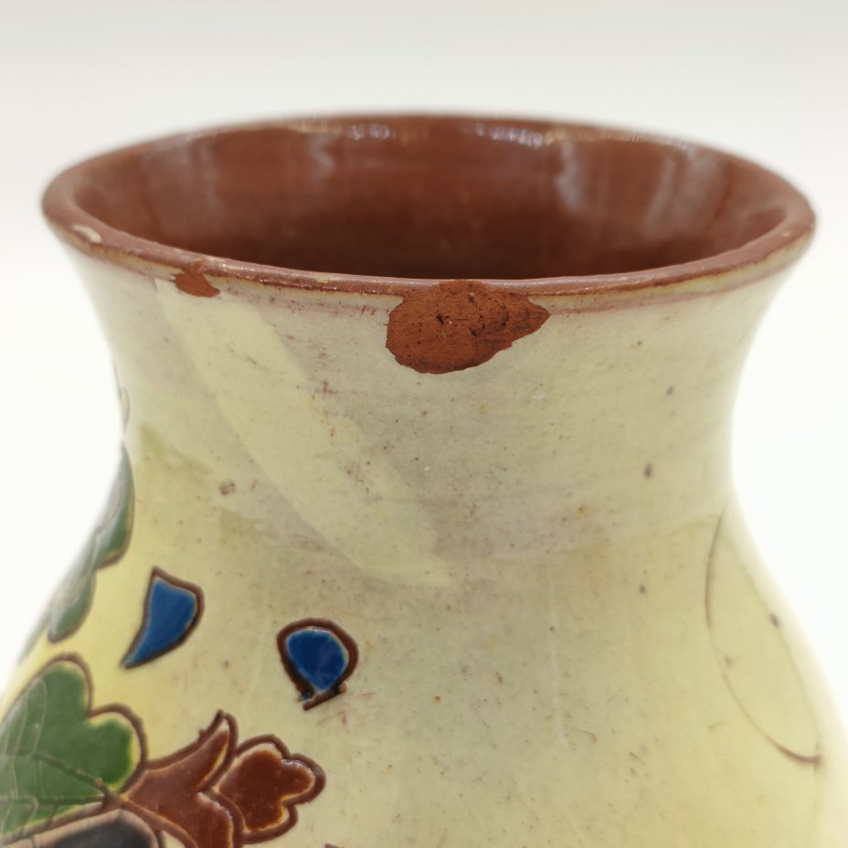 Ваза с изображением цветов и птиц, керамика, роспись, СССР, 1960-1970 гг.
