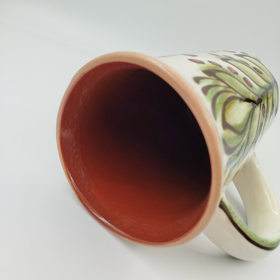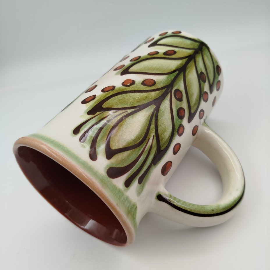 Кружка с растительным декором, авторы В.С. и Н.Е. Проторьевы (предположительно), керамика, роспись, Васильковский майоликовый завод, СССР, 1950-1970 гг.