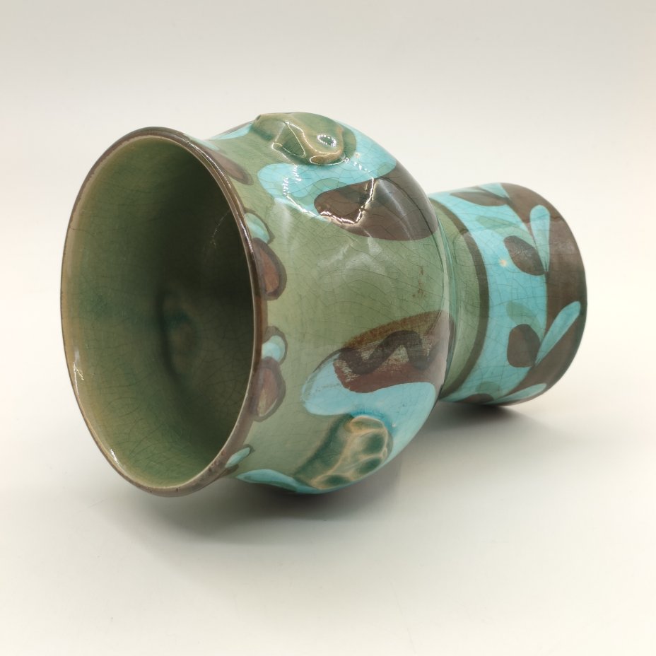 Вазочка в коричнево-синей гамме, керамика, поливы, Васильковский майоликовый завод, СССР, 1950-1960 гг.