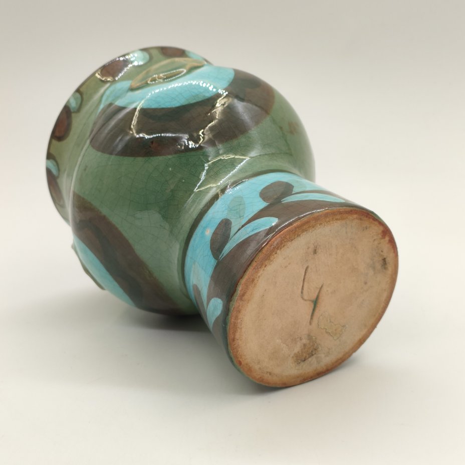 Вазочка с орнаментальным пояском на тулове, керамика, роспись, глазурь, Васильковский майоликовый завод, СССР, 1950-1970 гг.