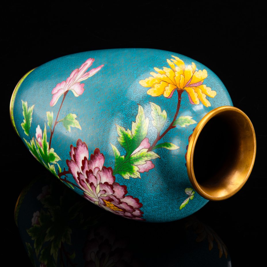 Ваза с цветочным декором, латунь, перегородчатая эмаль, техника клуазоне, Китай, 1950-1970 гг.