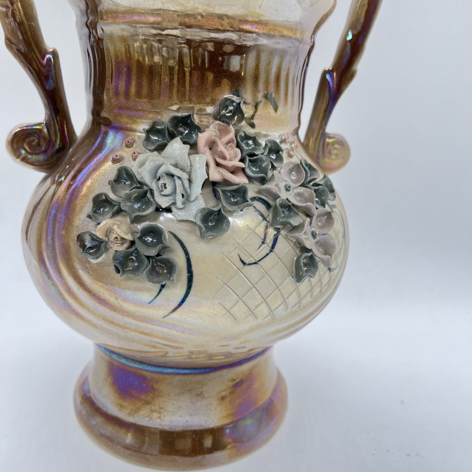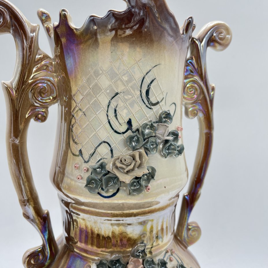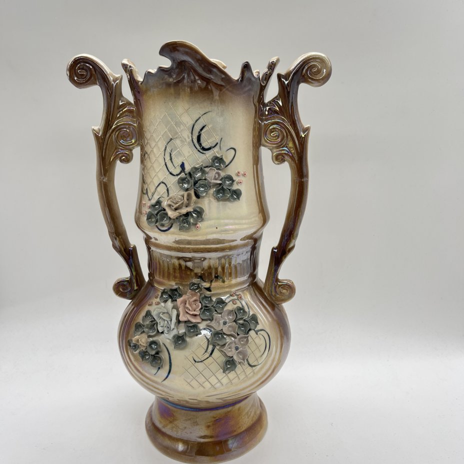 Ваза большая с лепным цветочным декором, керамика, роспись, Кисловодский художественный промкомбинат (КХПК), Россия, 1980-2000 гг.