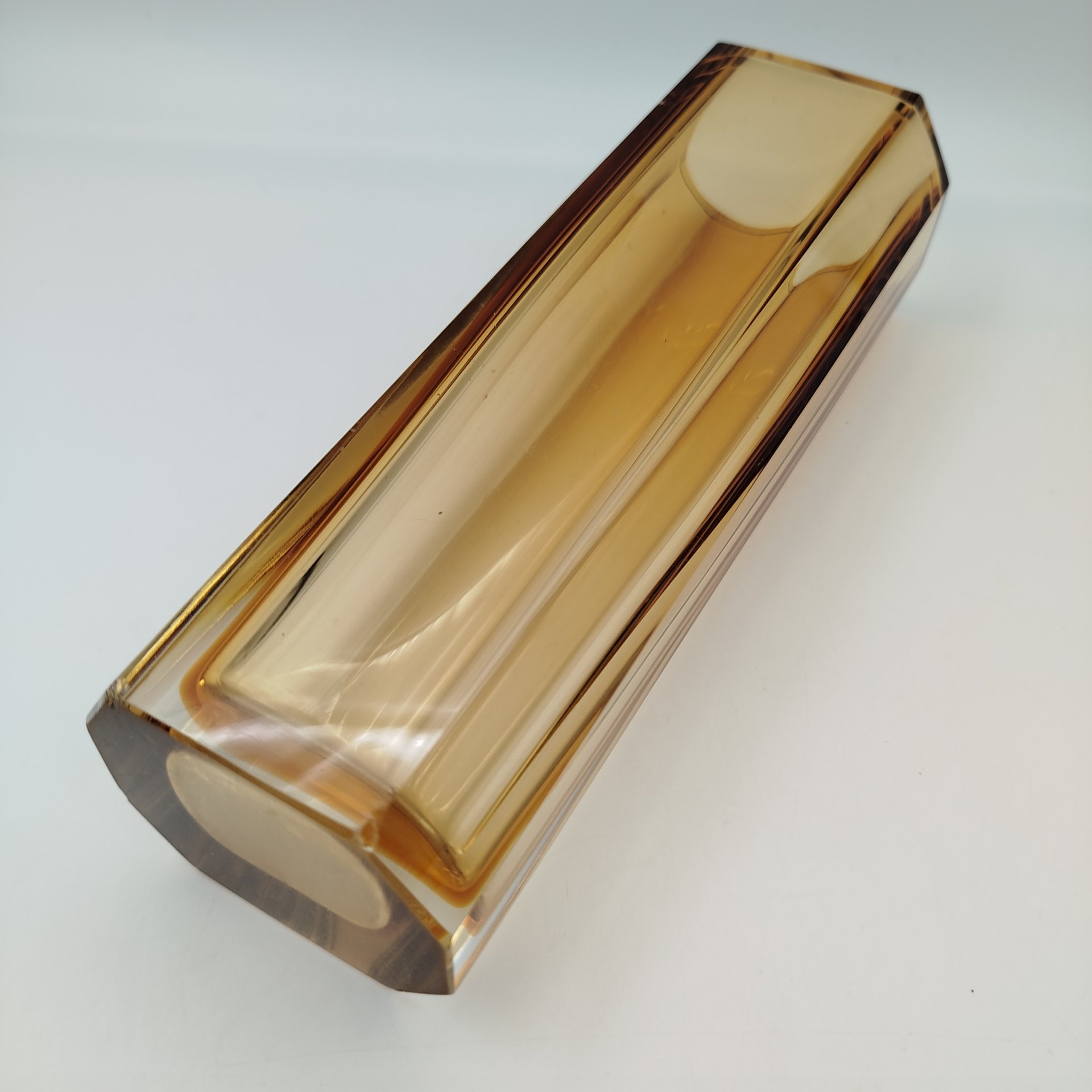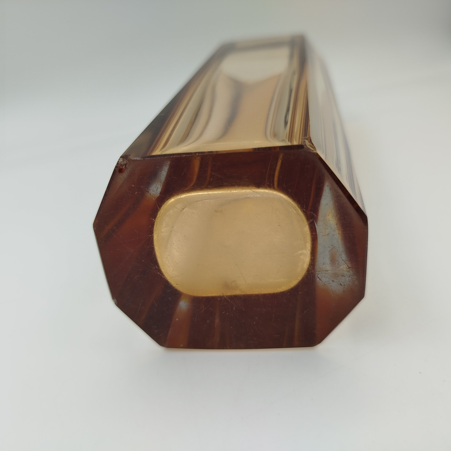 Ваза на металлическом основании, украшенная рельефным геометрическим декором в виде линз, стекло, металл, Европа, 1970-1990 гг.
