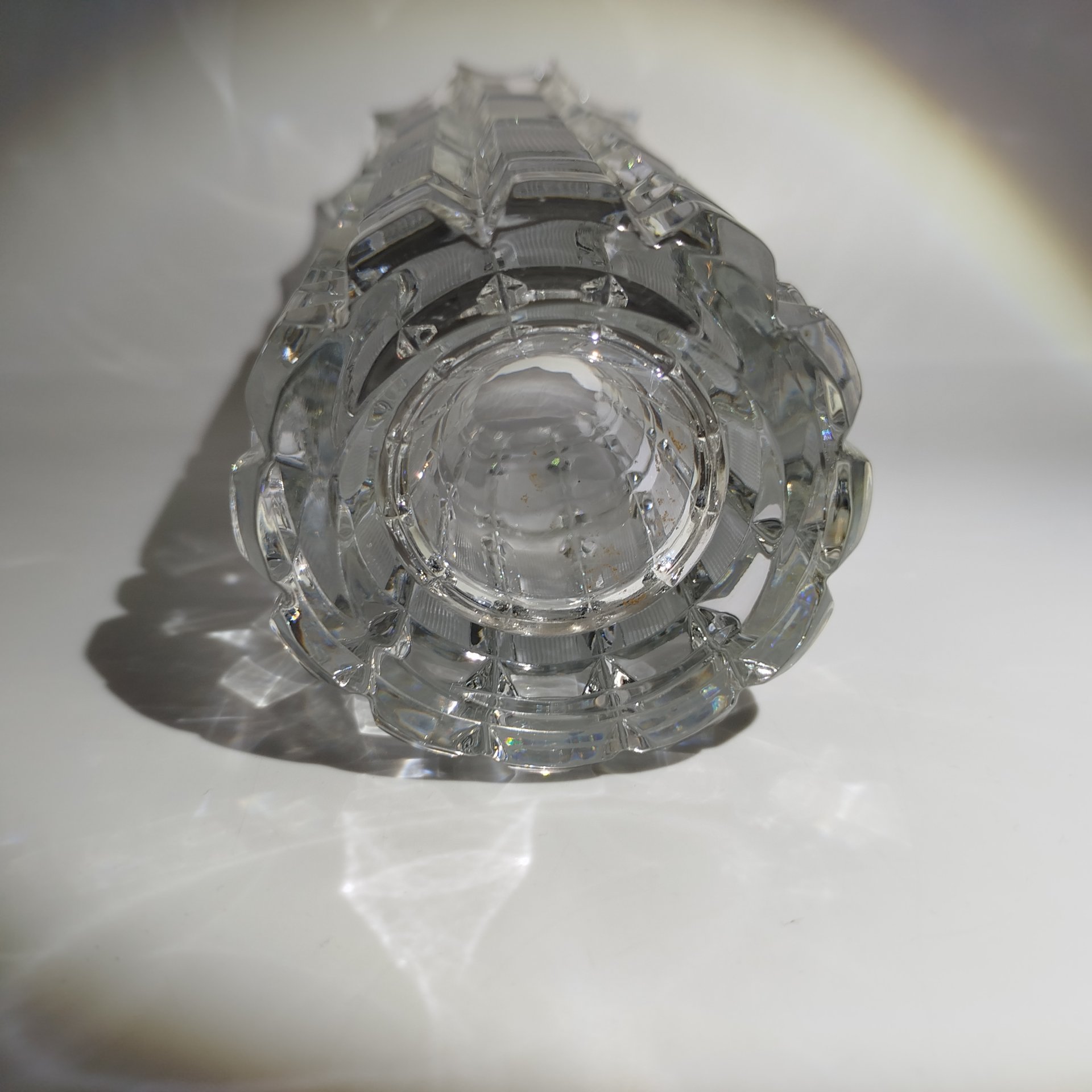 Ваза на металлическом основании, украшенная рельефным геометрическим декором в виде линз, стекло, металл, Европа, 1970-1990 гг.