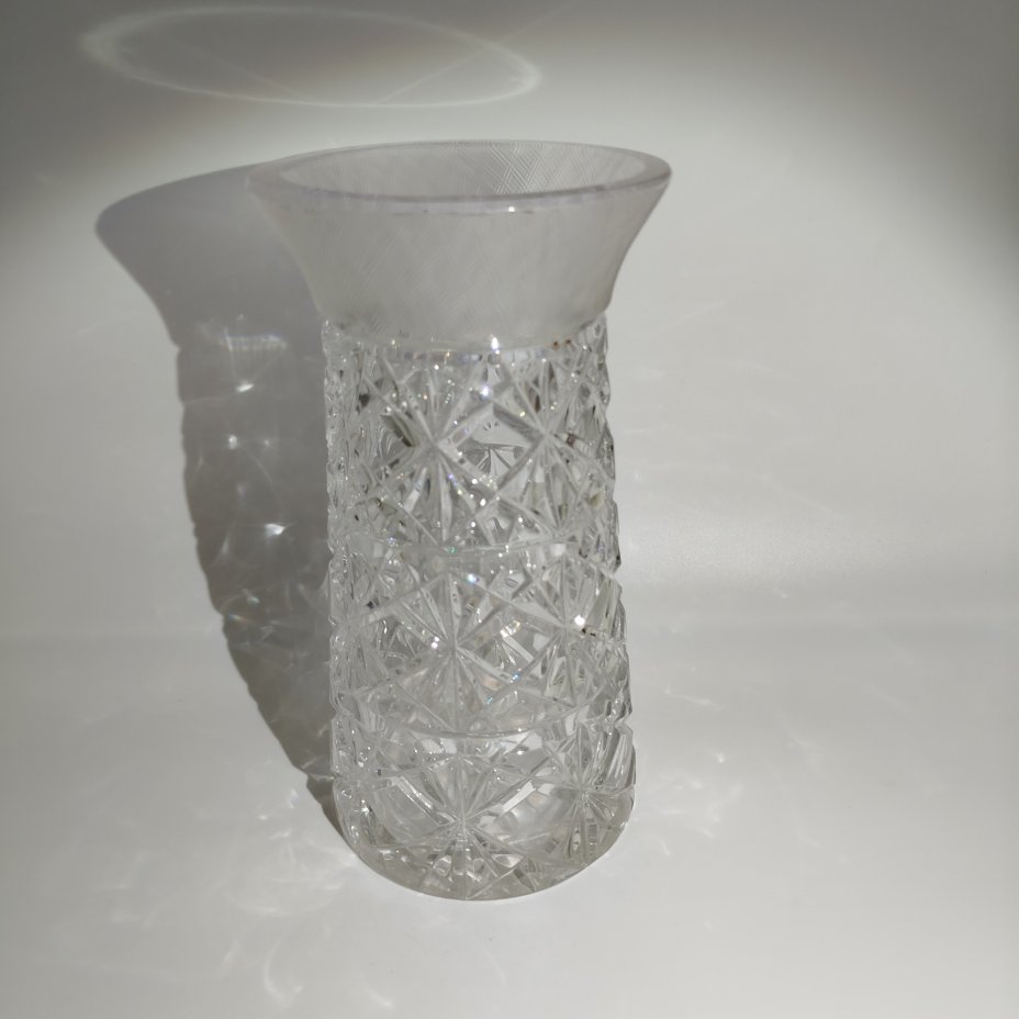 Ваза на металлическом основании, украшенная рельефным геометрическим декором в виде линз, стекло, металл, Европа, 1970-1990 гг.