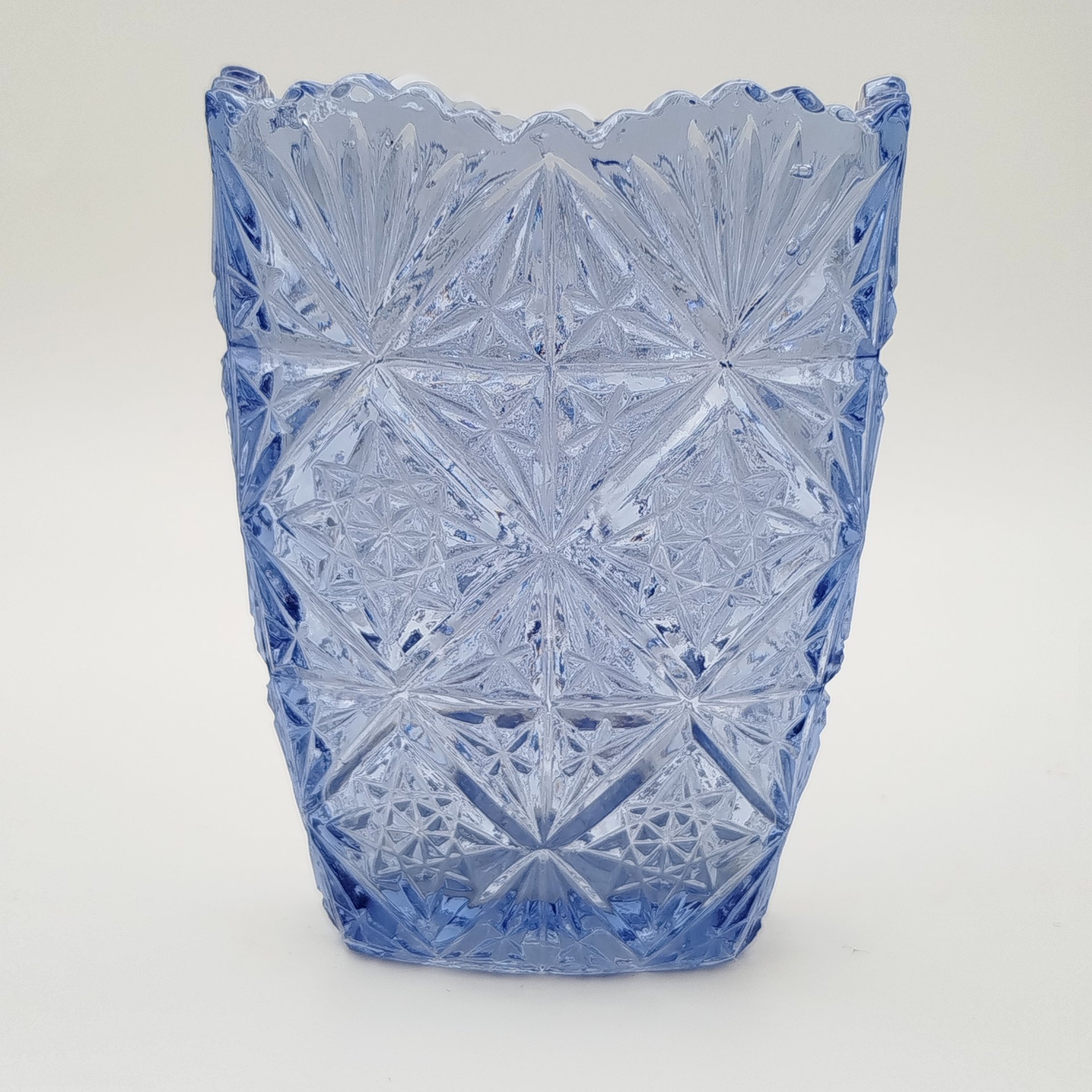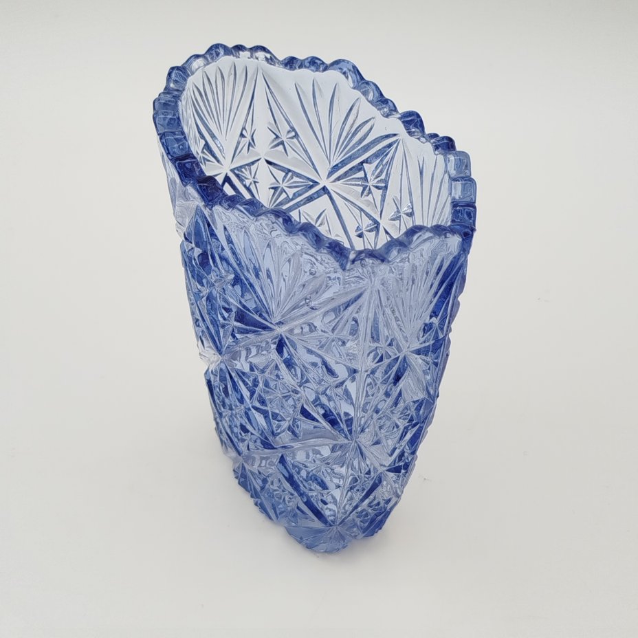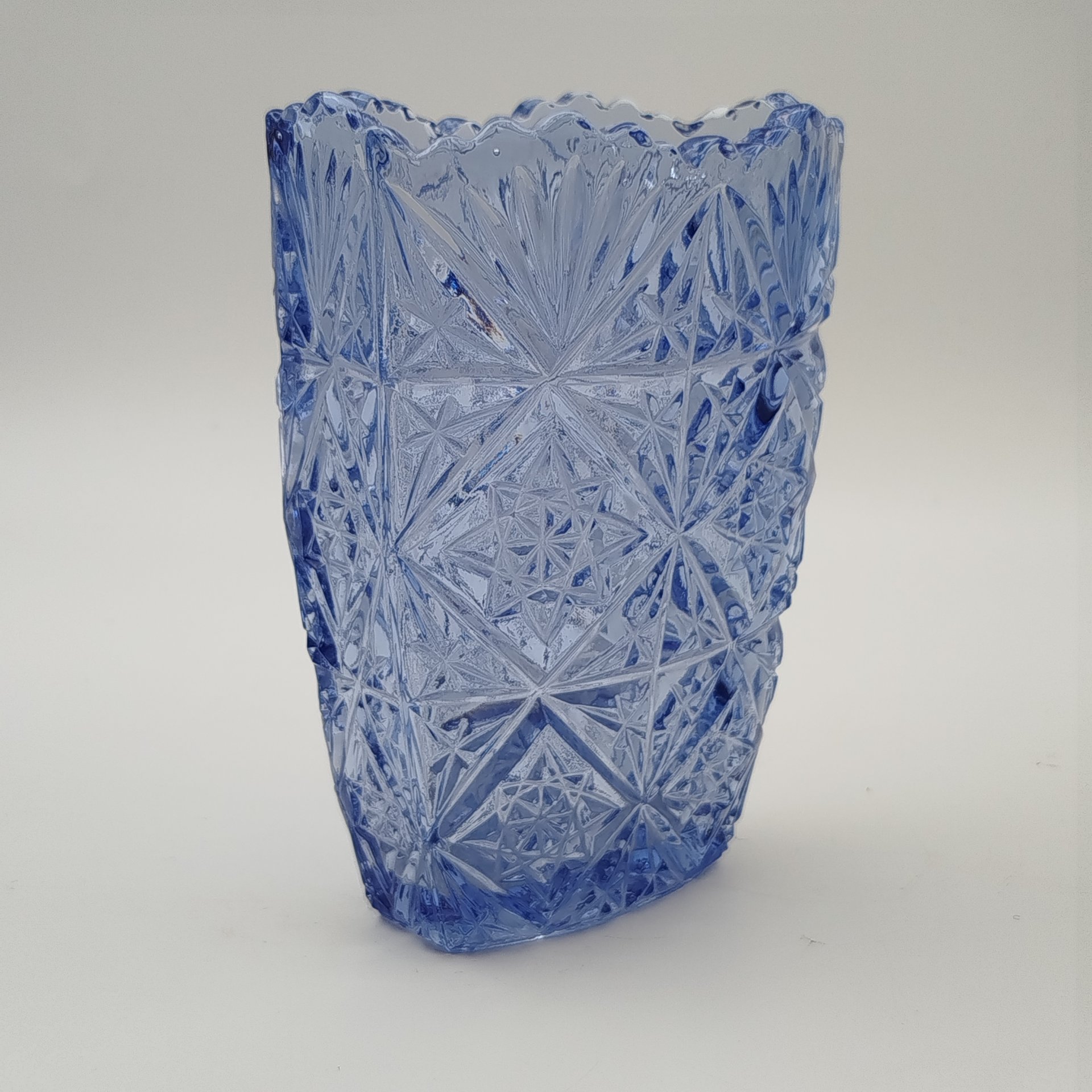 Ваза для небольшого букета сиренево-голубого оттенка с резным декором, стекло, резьба, СССР, 1970-1990 гг.