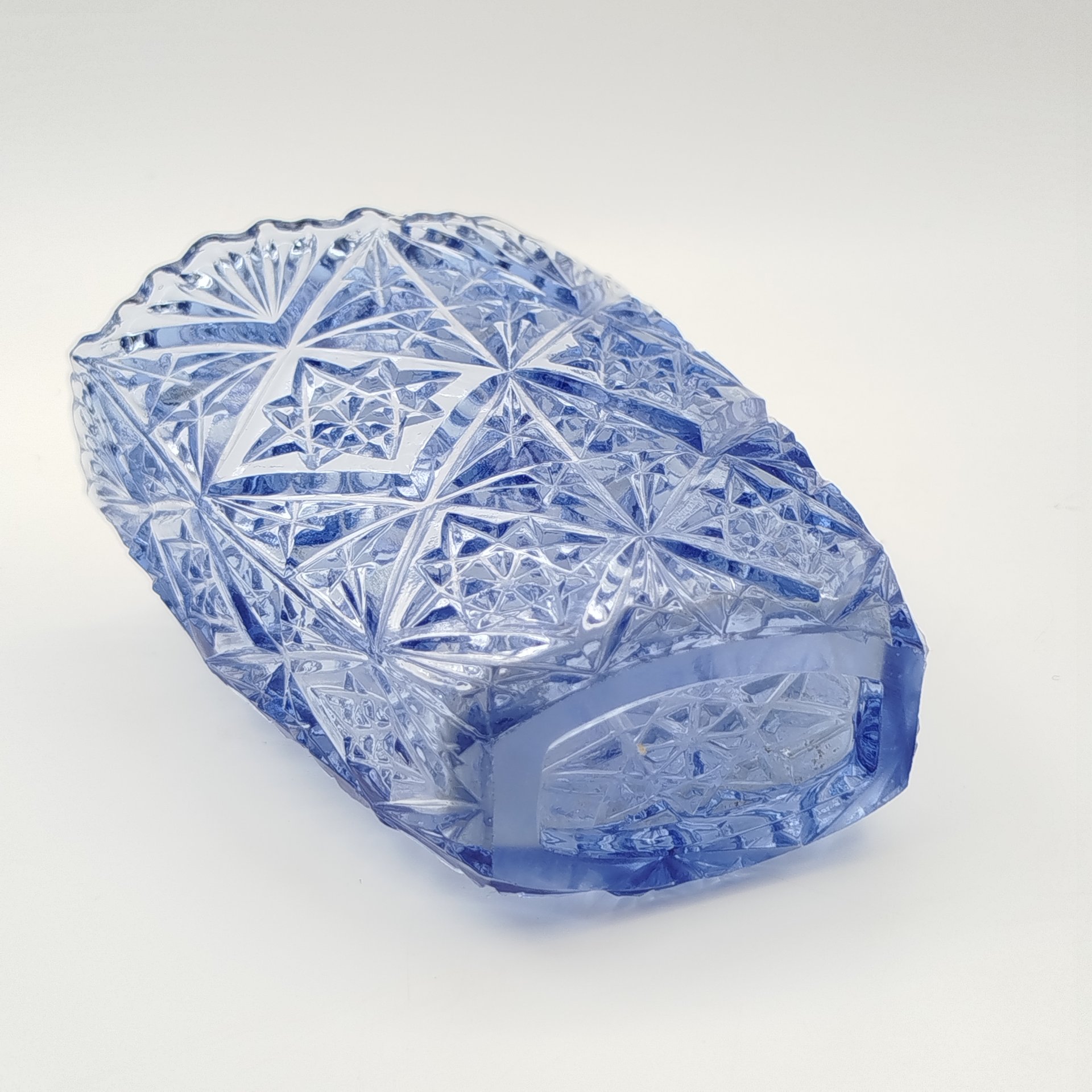 купить Ваза для небольшого букета сиренево-голубого оттенка с резным декором, стекло, резьба, СССР, 1970-1990 гг.
