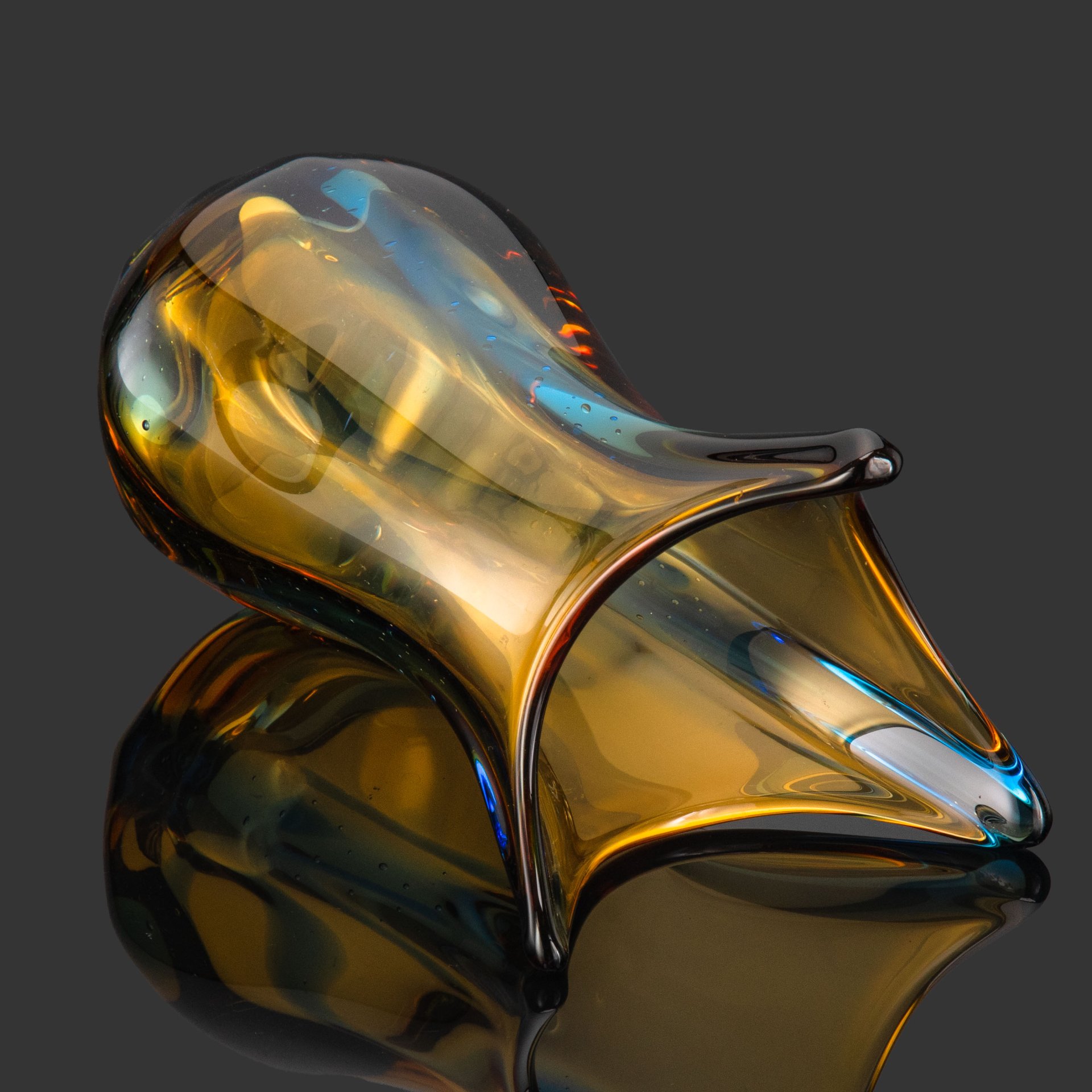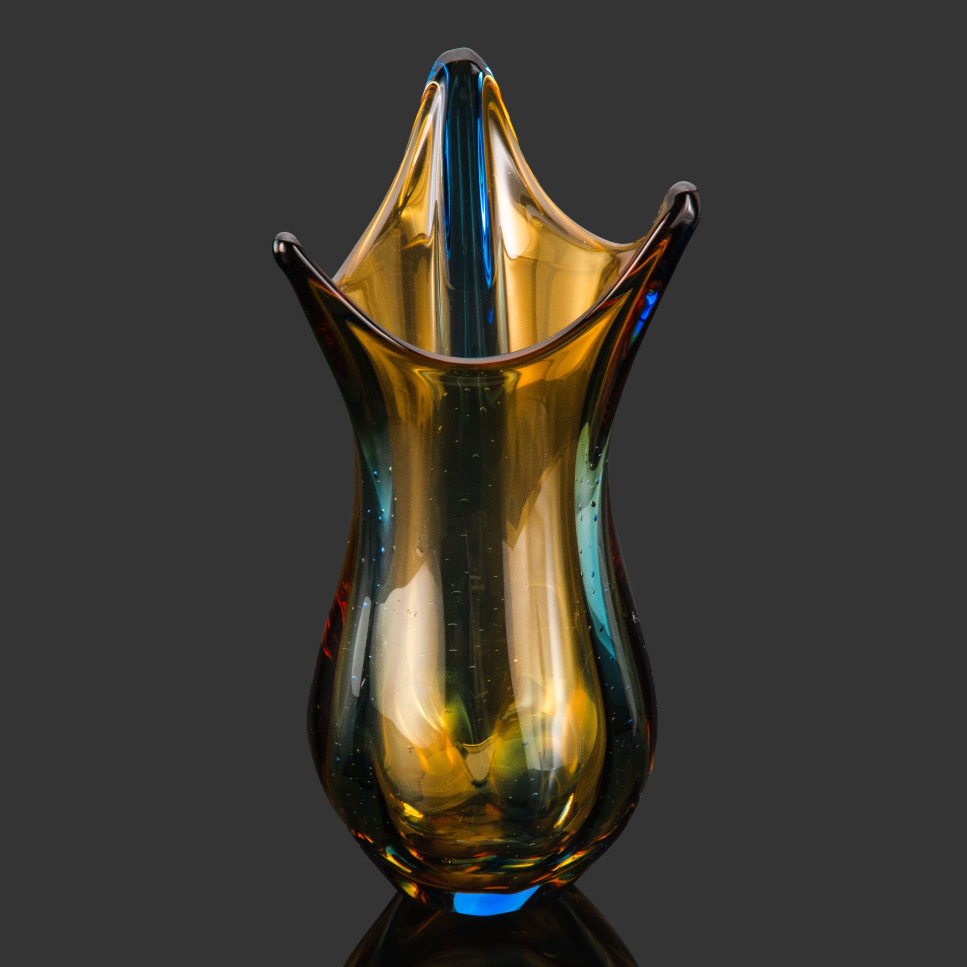 Ваза розово-оранжевого оттенка, автор Йозеф Господка (Josef Hospodka), стекло, гутная техника, Хршибский стекольный завод (Chřibská), Чехословакия, 1960-1970 гг.