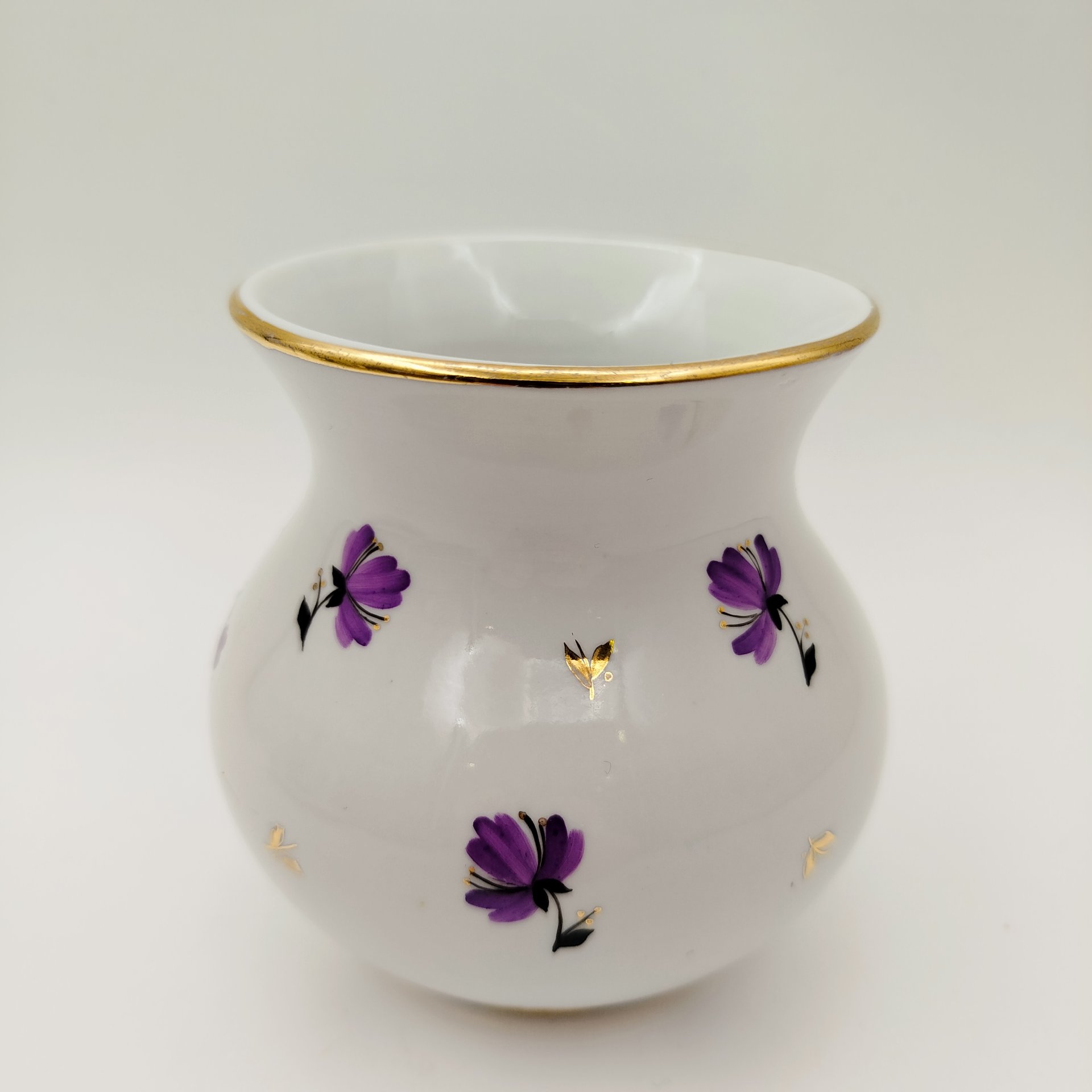 Ваза с боковыми ручками и цветочным декором, фарфор, роспись, золочение, Ленинградский опытный завод (ЛОЗ), СССР, 1973-1983 гг.