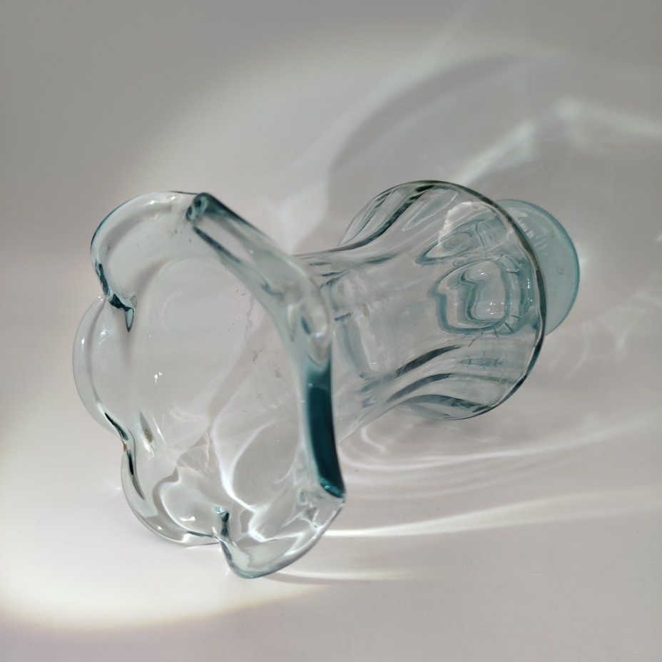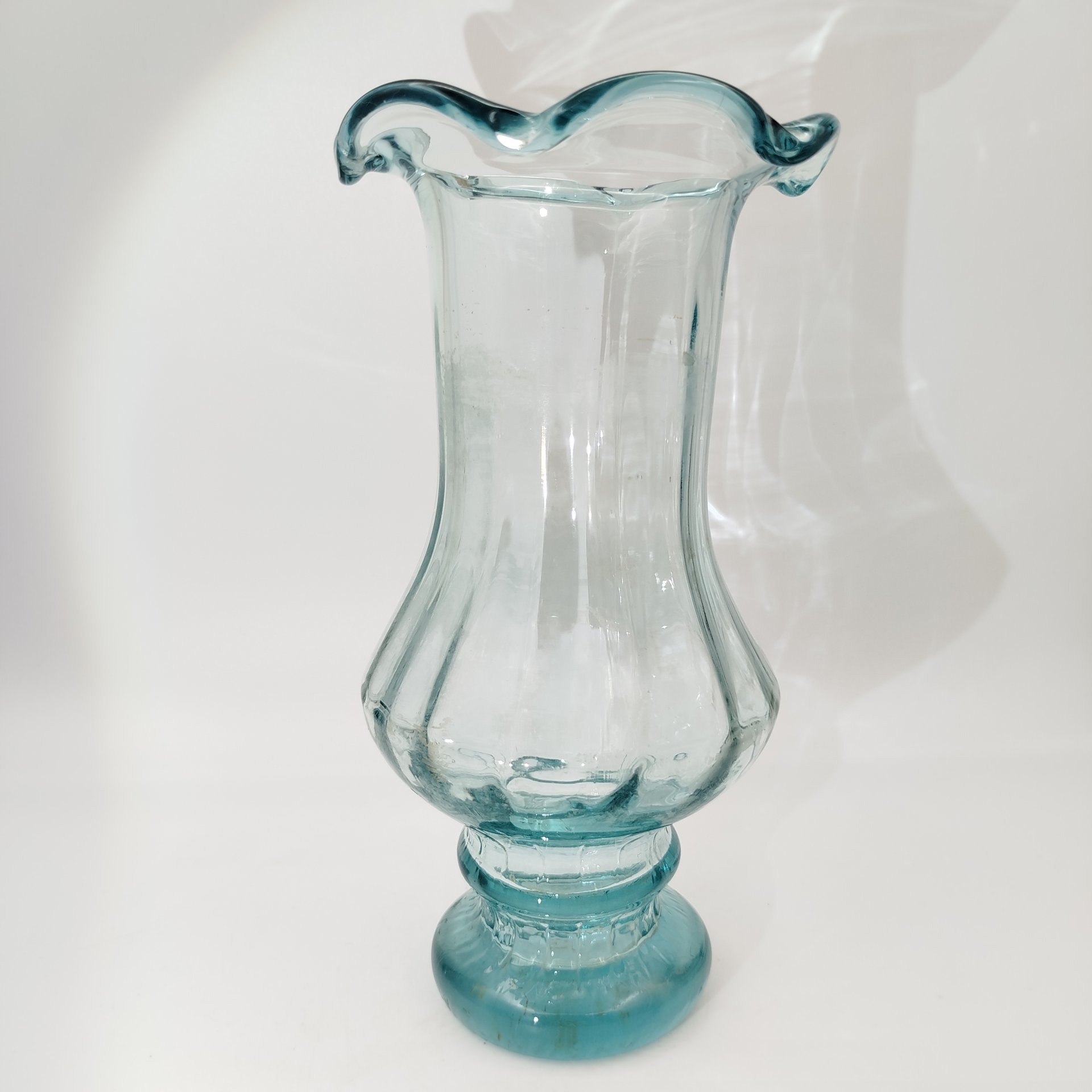 Ваза нежно-голубого оттенка с фестончатым краем, стекло, СССР, 1970-1990 гг.