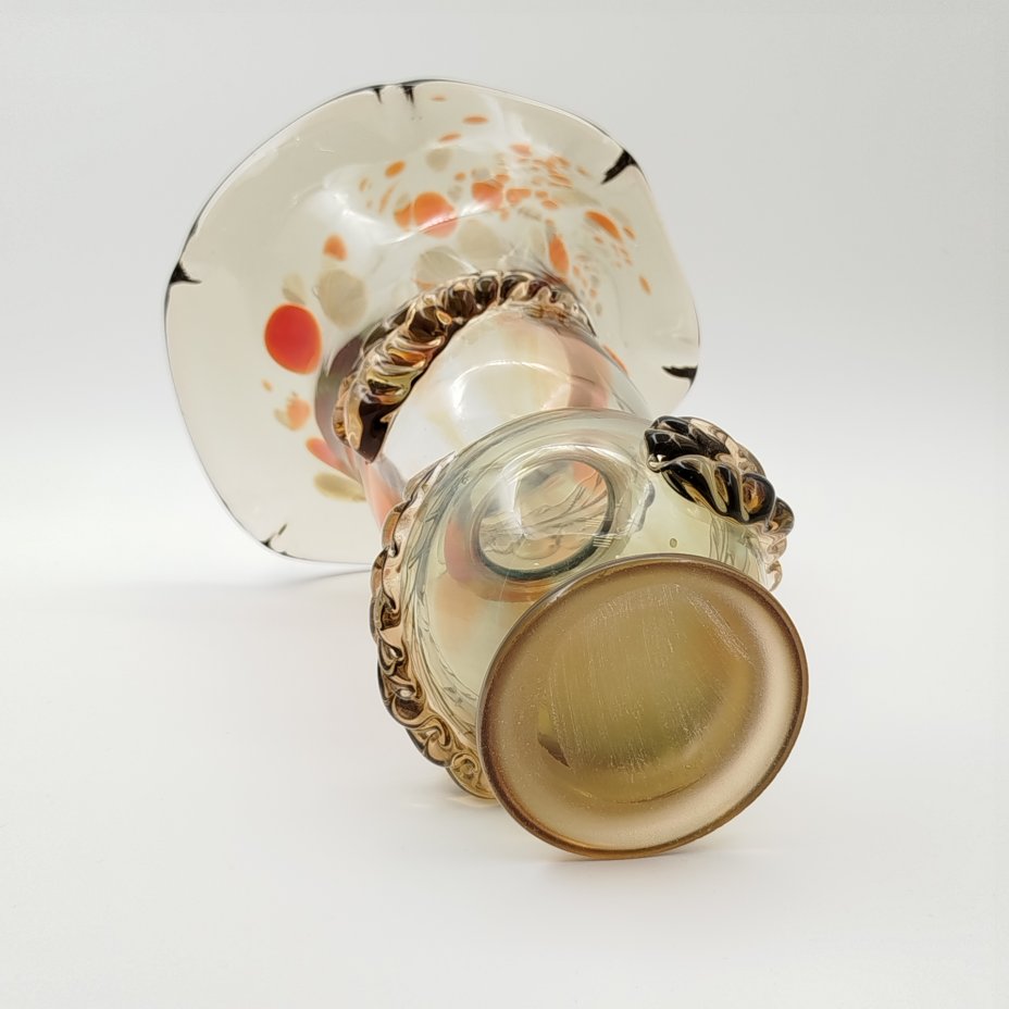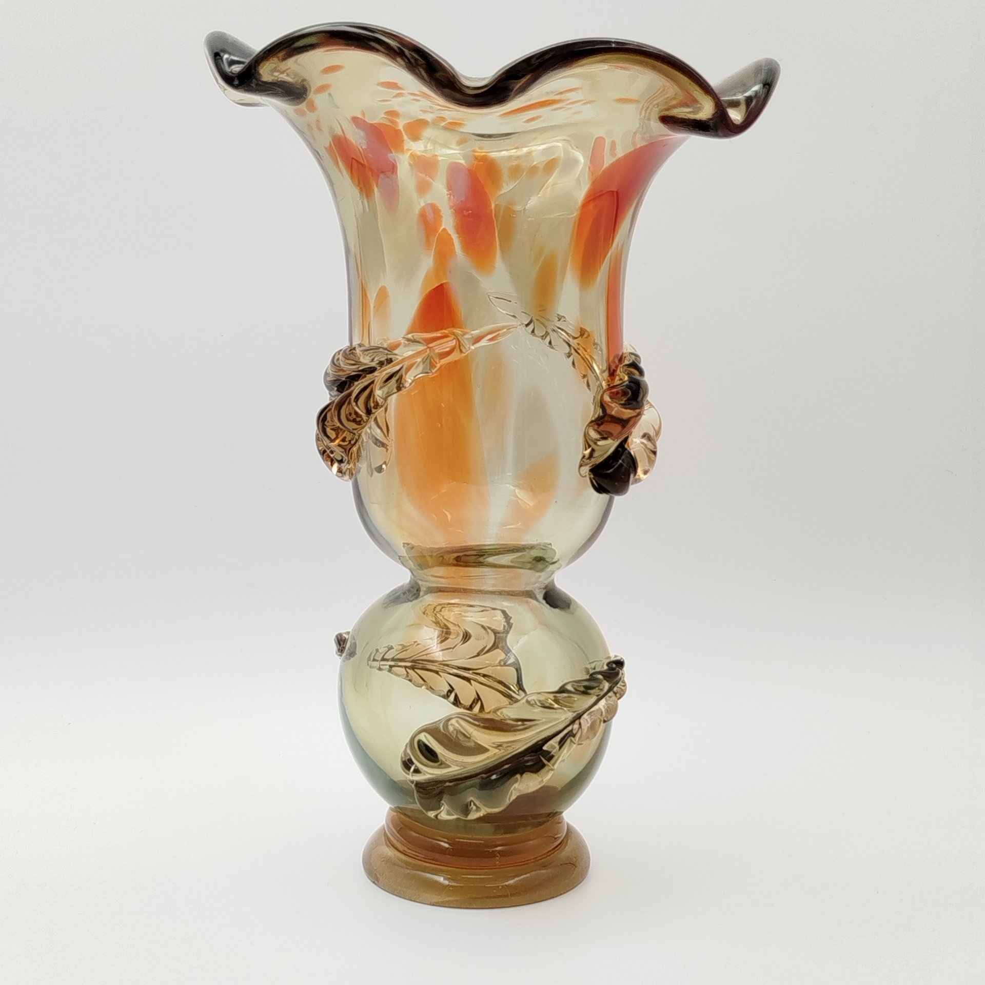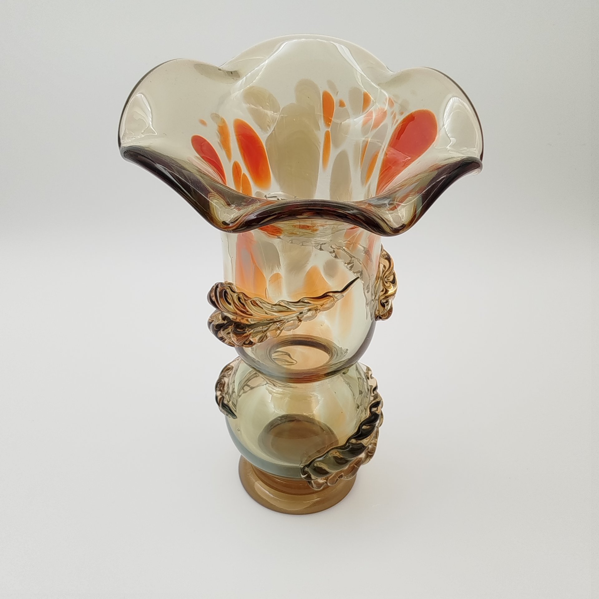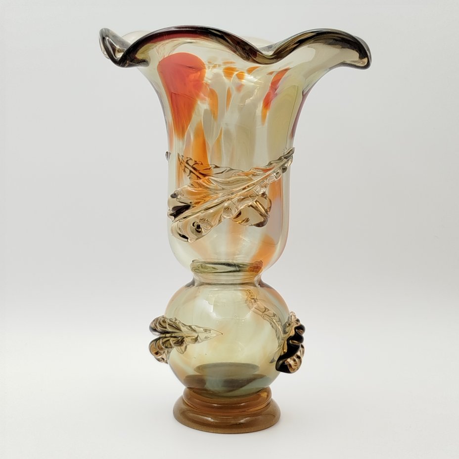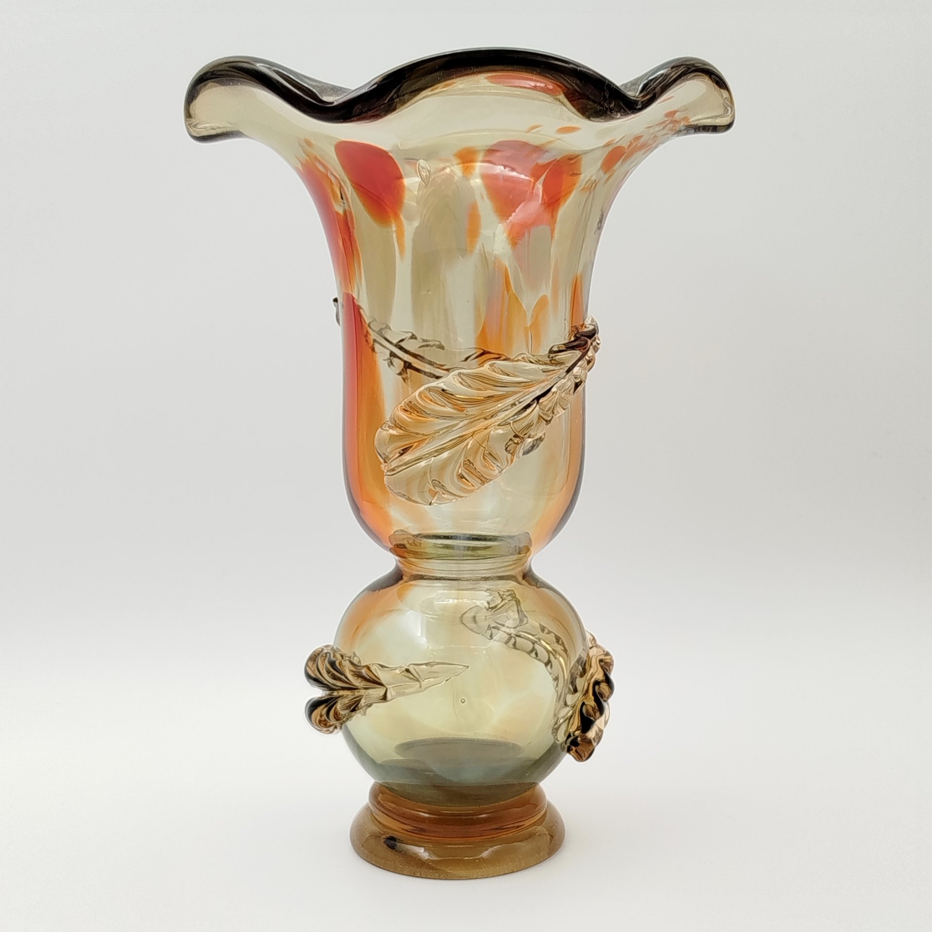 Ваза разноцветных оттенков с лепным растительным декором, стекло, гутная техника, СССР, 1960-1980 гг.