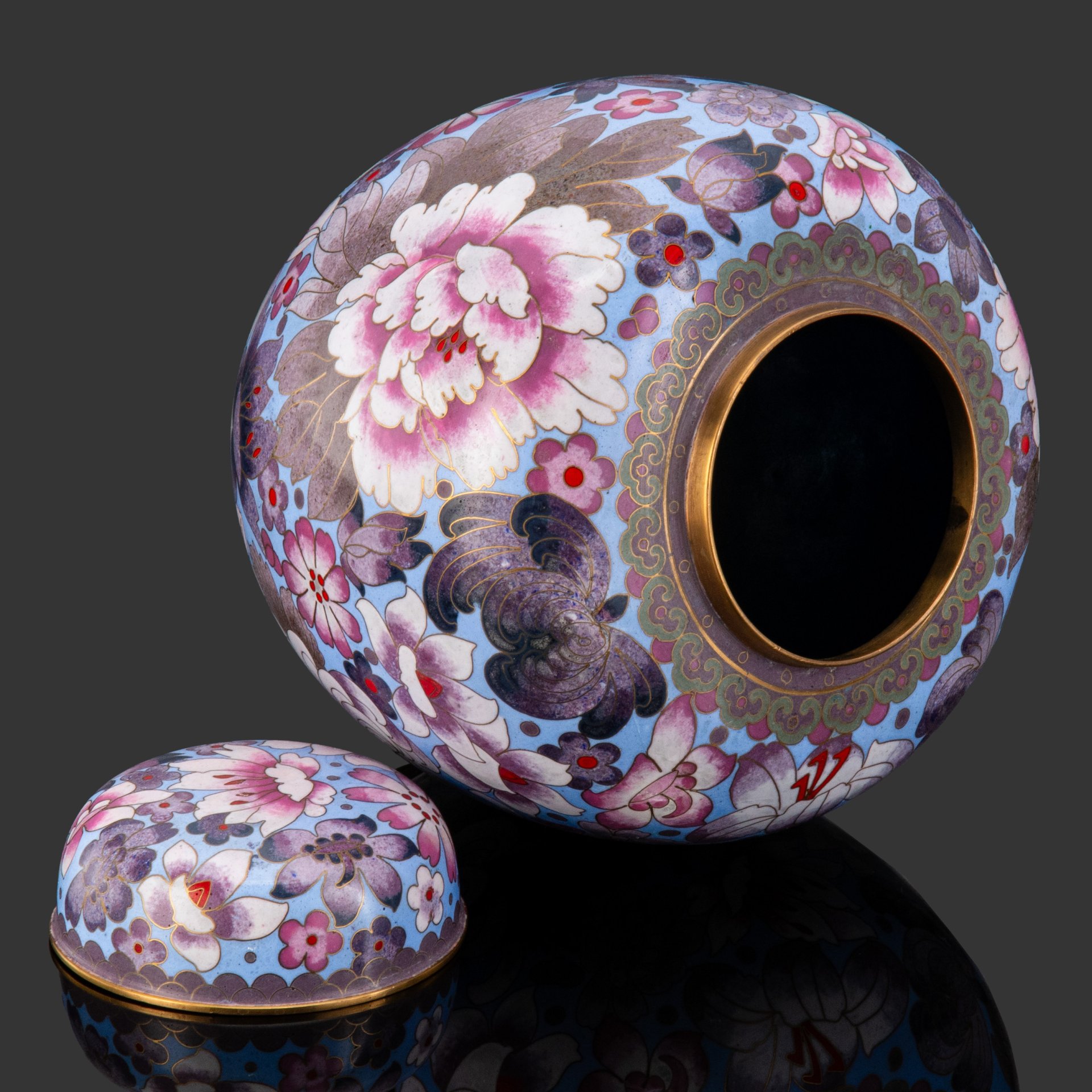 купить Ваза с крышкой пузатой формы (имбирная ваза), украшенная цветами, латунь, эмаль, техника клуазоне, Китай, 1970-1990 гг.