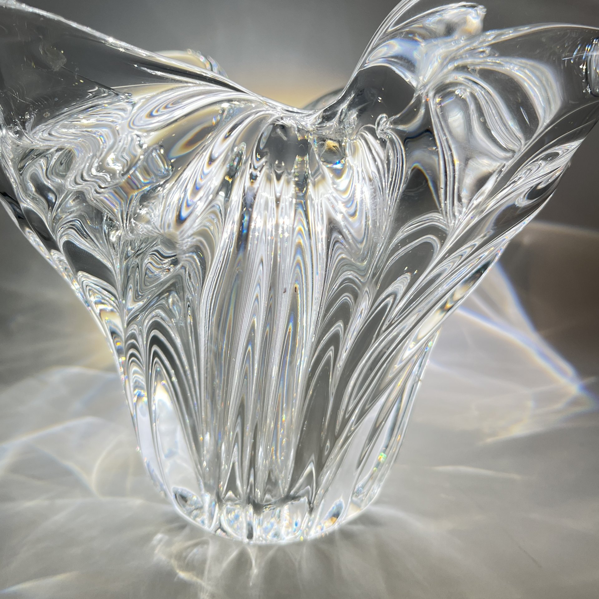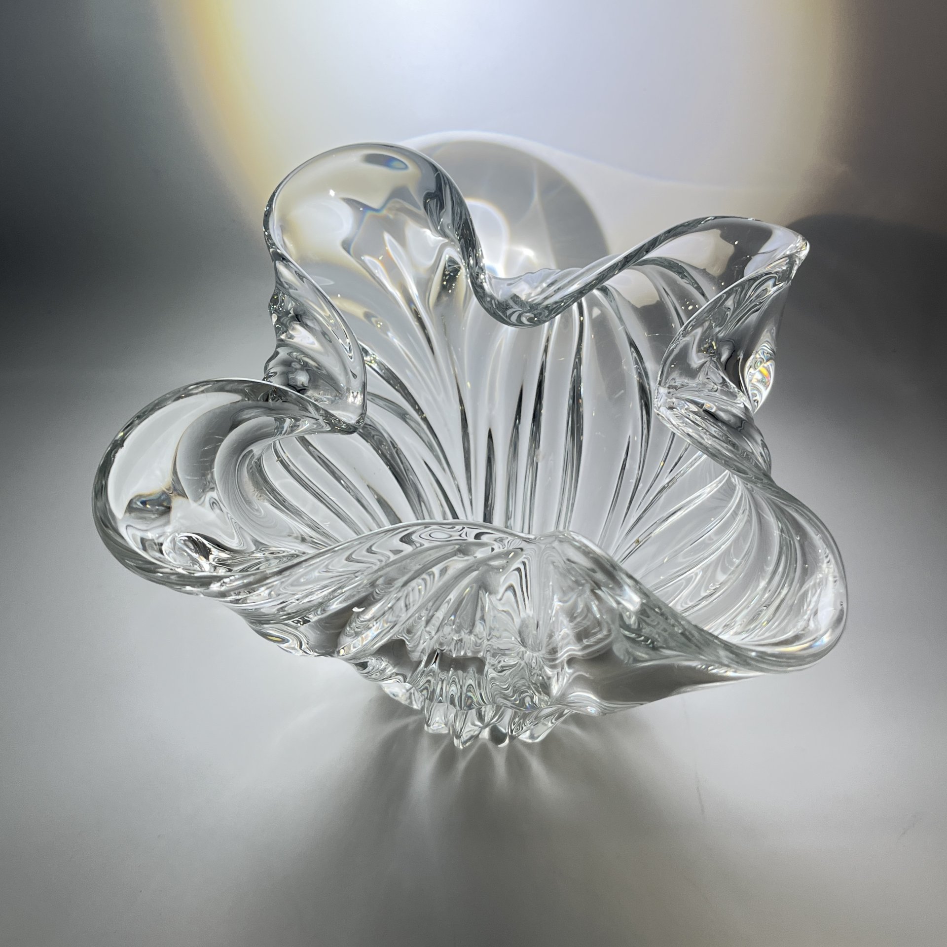 Конфетница, украшенная спиралевидным декором, стекло, гутная техника, Львовская керамико-скульптурная фабрика (ЛКСФ), СССР, 1960-1980 гг.
