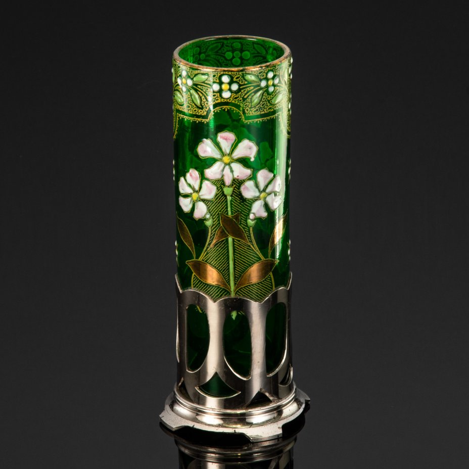 Ваза вытянутой формы с металлической оплеткой, стекло, алмазная грань, металл, СССР, 1970-1980 гг.