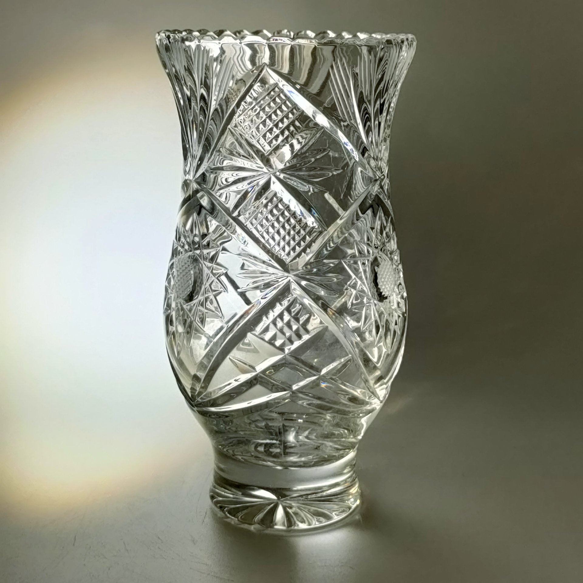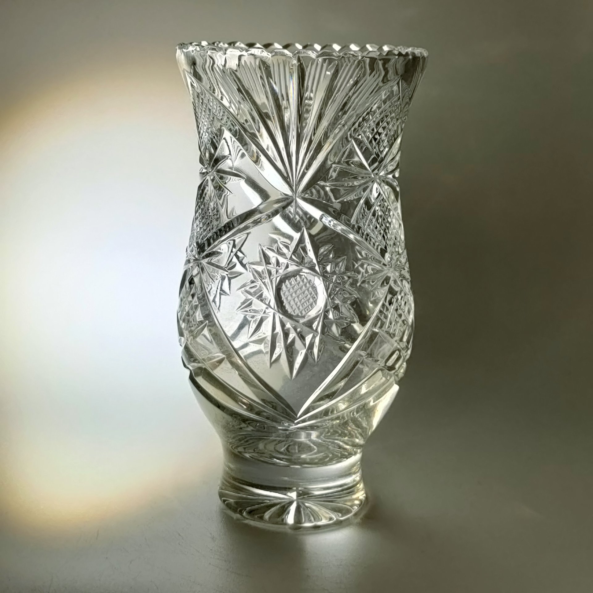 Вазочка для небольшого букета с резным геометрическим декором, хрусталь, алмазная грань, СССР, 1970-1990 гг.