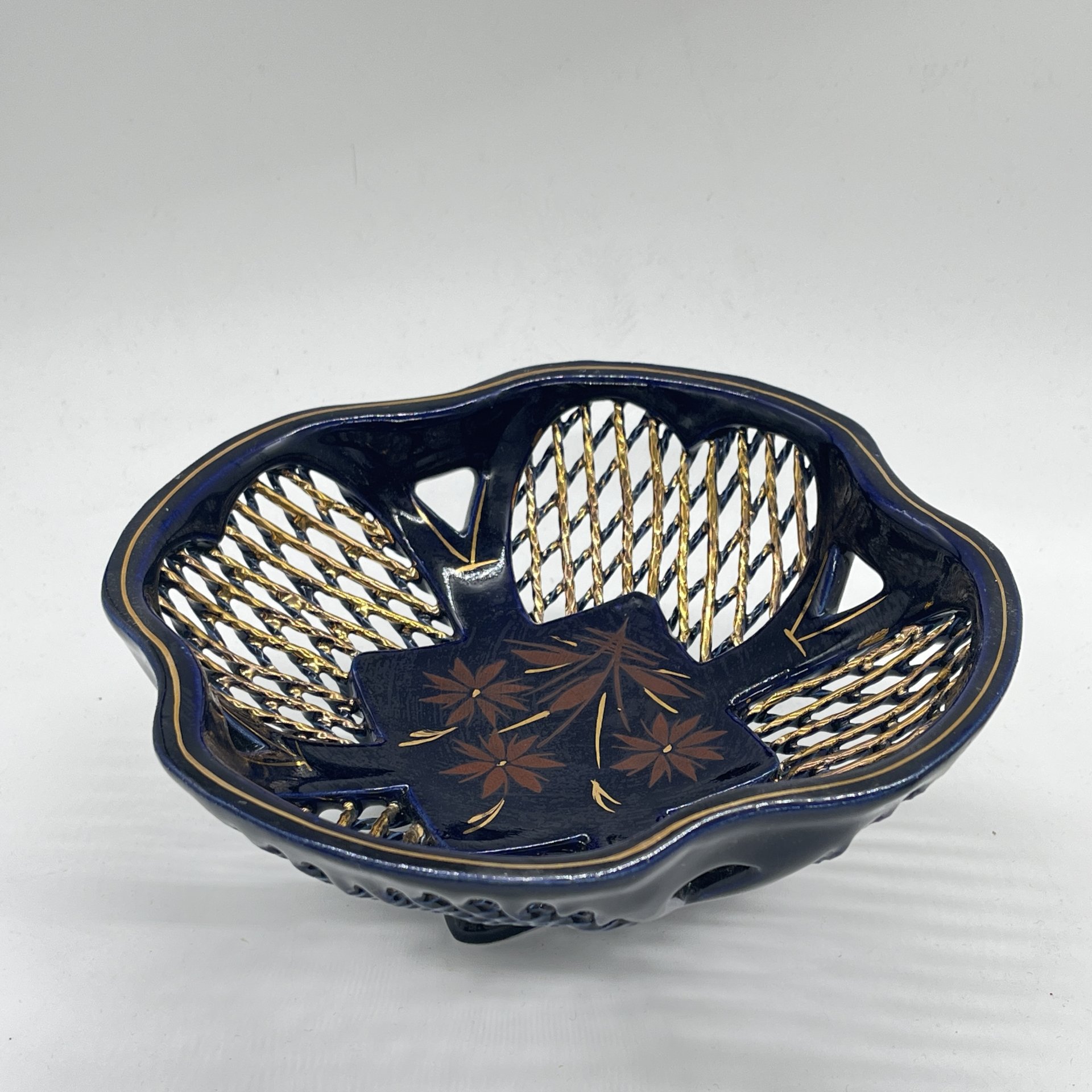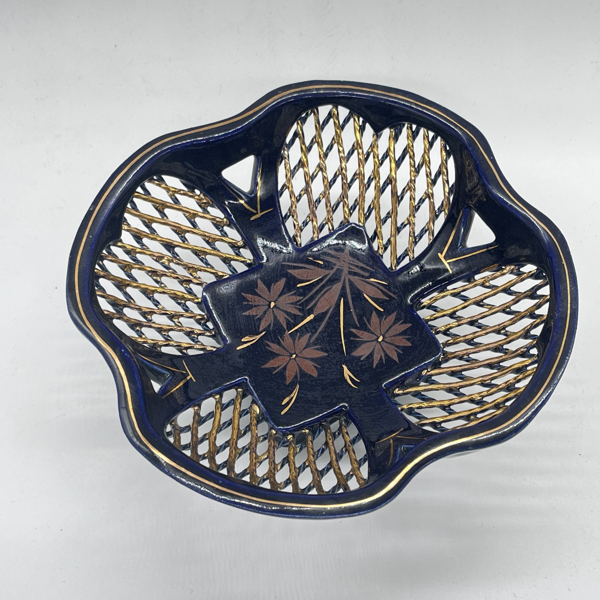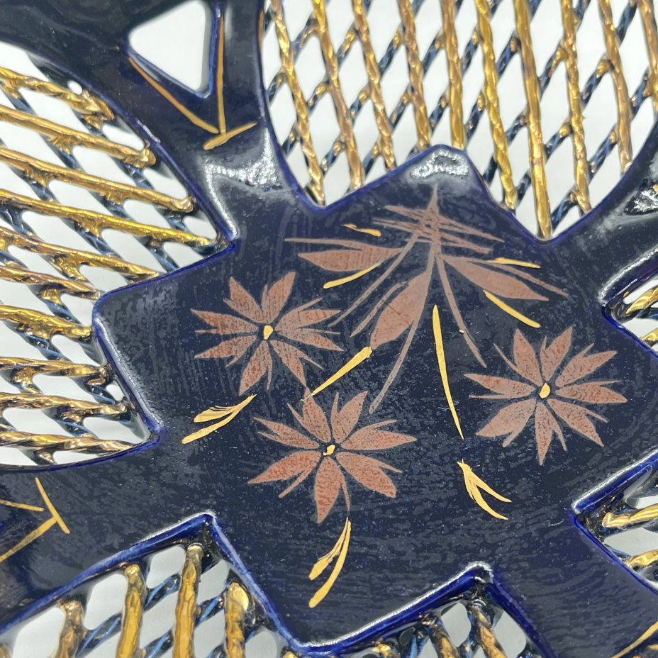 купить Вазочка с прорезным ажурным бортом с растительным декором, керамика, роспись, золочение, Азия, 1990-2000 гг.
