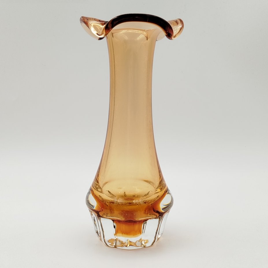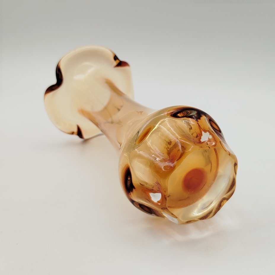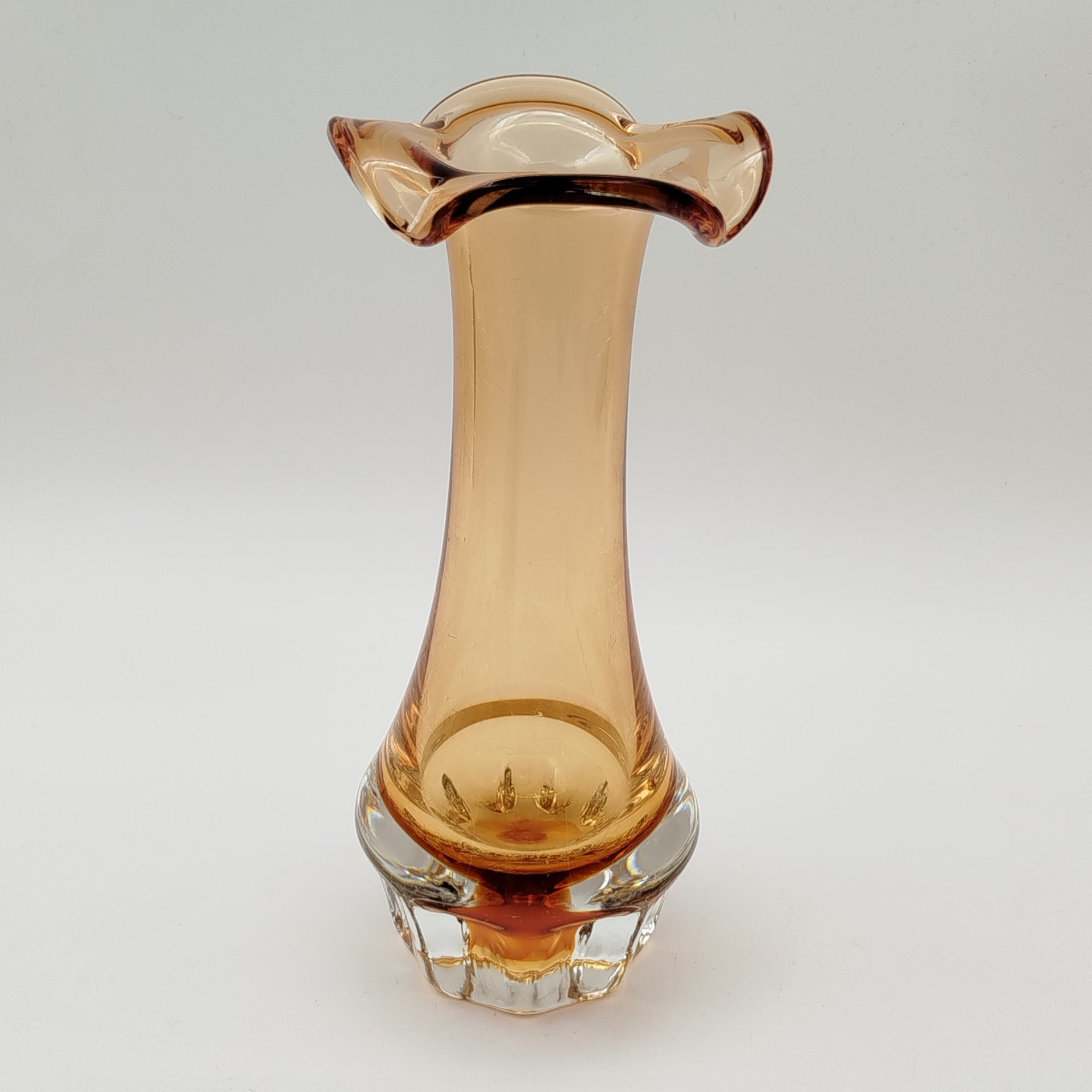 Вазочка янтарного оттенка с фестончатым горлом, стекло, СССР, 1970-1990 гг.