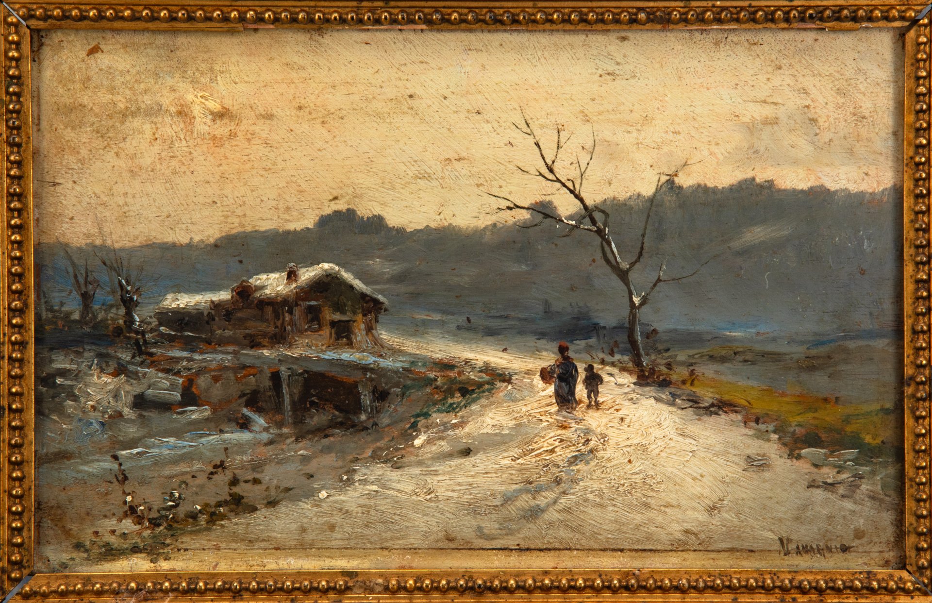 Картина "Сельский пейзаж" (название условное), автор Юрий Рыполовский, оргалит, масло, СССР, 1970-2000 гг.