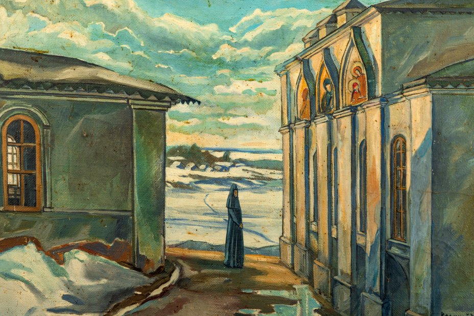 Картина "Соловецкий кремль", автор Александра Викторовна Жирмунская (род. в 1949 году), холст, масло, деревянный подрамник, СССР, 1979 г.