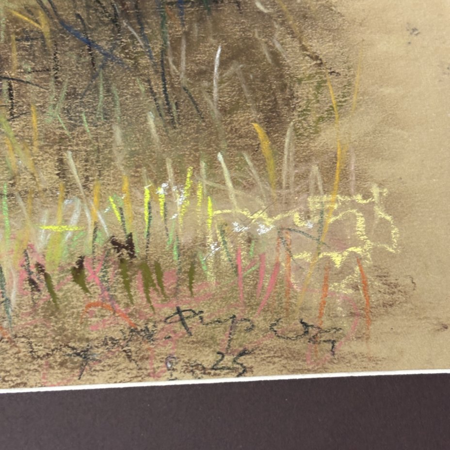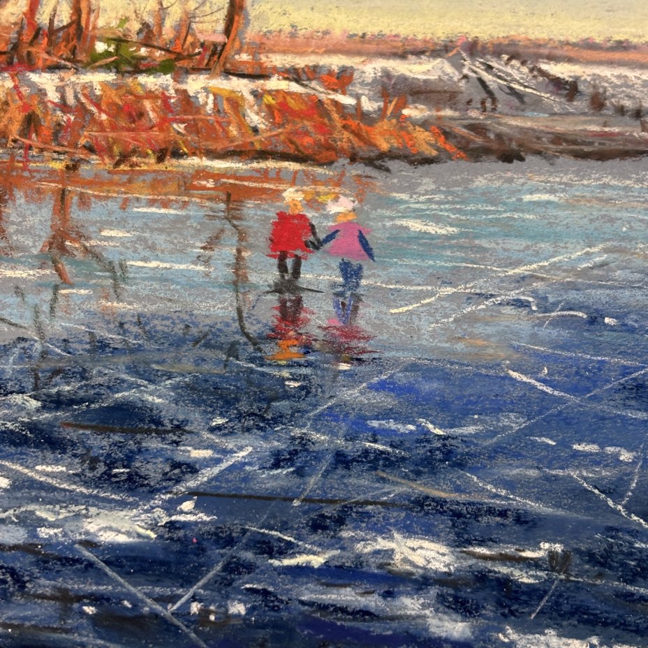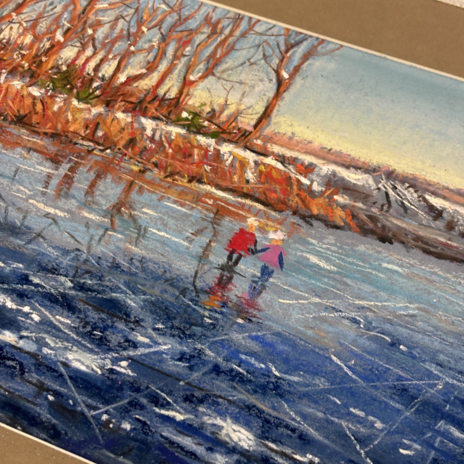 Графическая работа в паспарту "Прогулка по замерзшему озеру" ("Зима"), художник Жорж Фирсов, бумага, пастель, Российская Федерация, 2025 г.