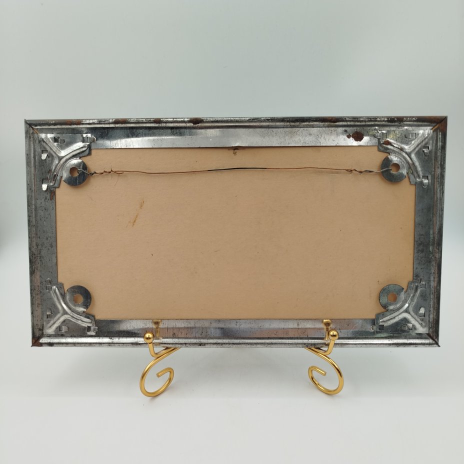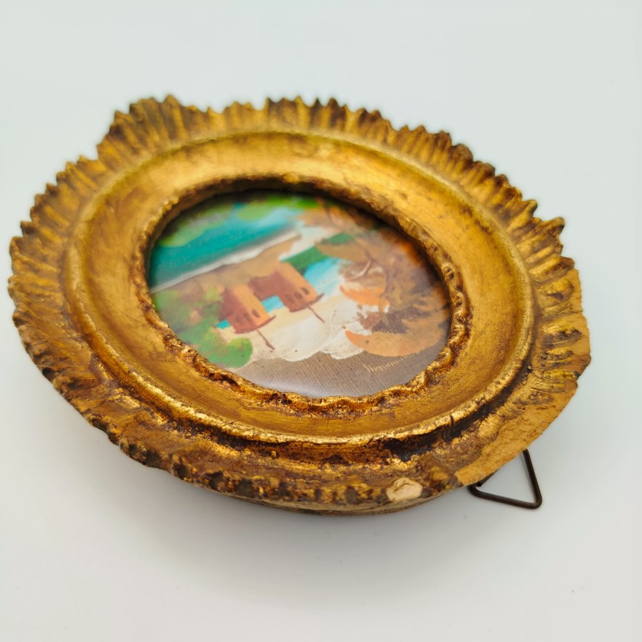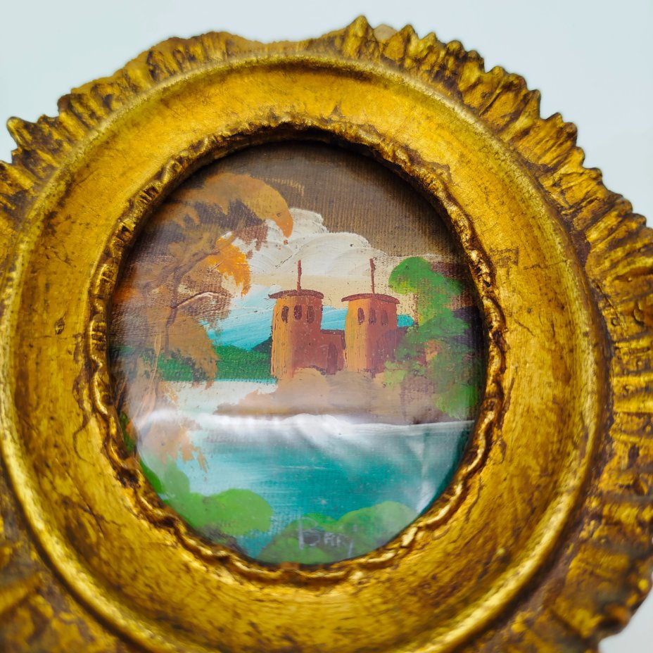 Картина (миниатюра) "Пейзаж с замком" в раме, холст на картоне, масло, композитный материал, стекло, Европа, 1950-1980 гг.
