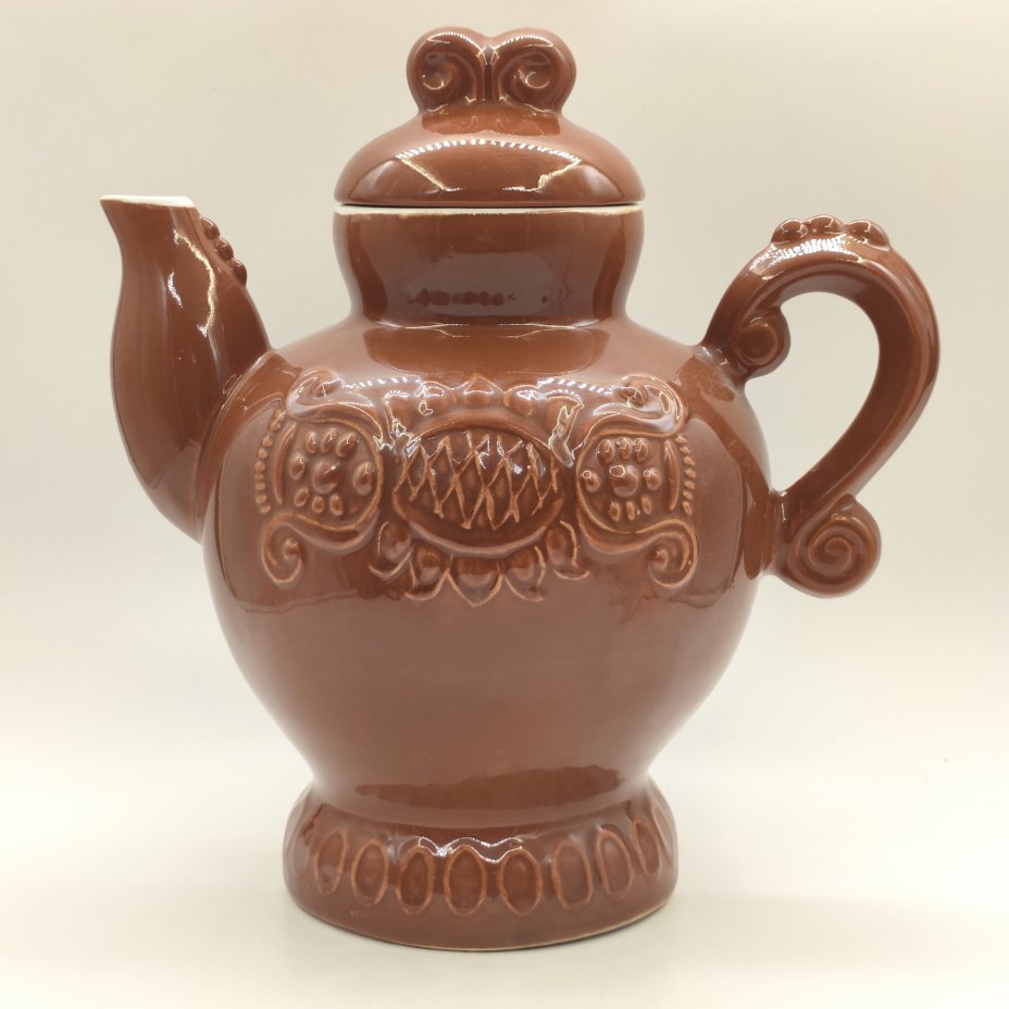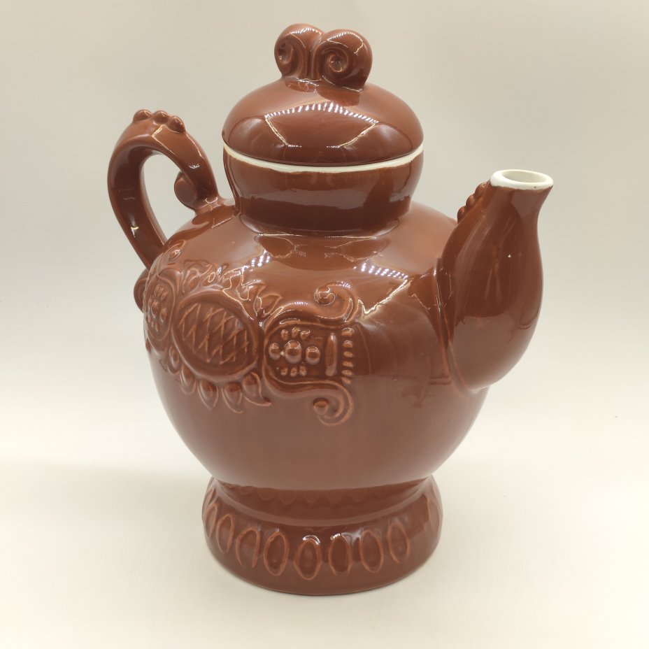 Доливной чайник с монохромным абстрактным декором, керамика, глазурь, СССР, 1970-1990 гг.