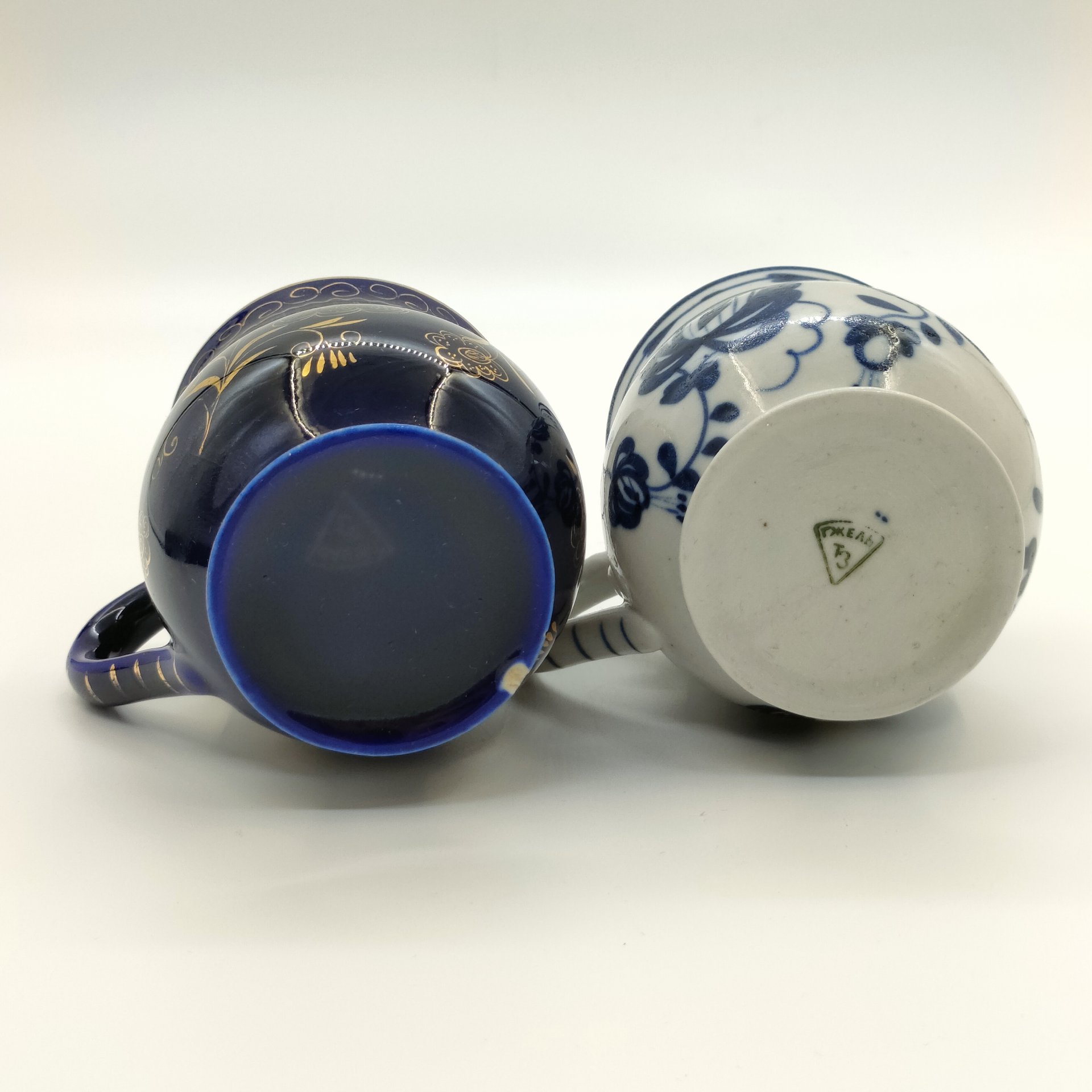 Доливной чайник, украшенный растительным декором, фаянс, роспись, Семикаракорская керамика (Семикаракорский райпромкомбинат), СССР, 1970-1990 гг.
