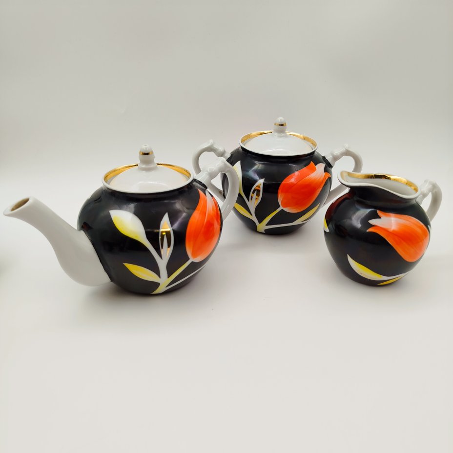 Сервиз чайный на 6 персон "Тюльпан", фарфор, крытье, роспись, Дулевский фарфоровый завод (Дулёво), СССР, 1968-1991 гг.