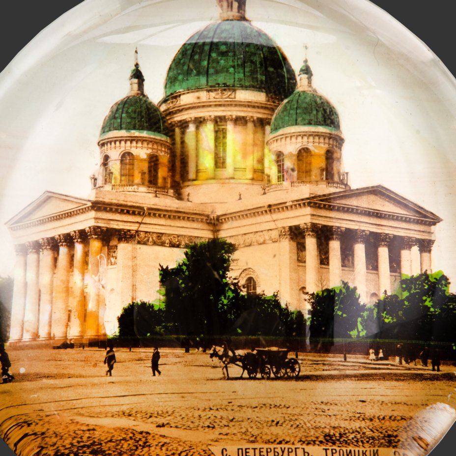 Пресс-папье "С.Петербургъ. Троицкий собор", стекло, бумага, печать, Российская империя, 1890-1910 гг.